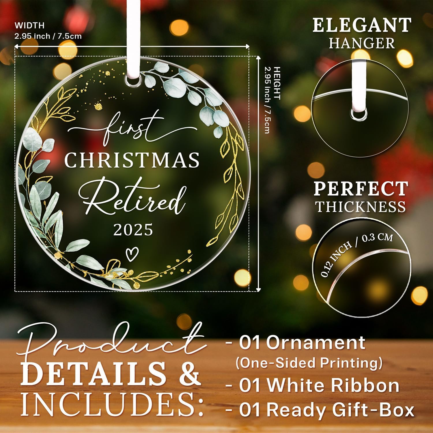 • FIRST CHRISTMAS RETIRED ORNAMENT 2025: Celebrate the retiree's well-deserved retirement during the festive Christmas season with a heartfelt and thoughtful gift. Suitable for retirement ornament, retirement ornament women 2025, retired ornament 2025, retired gifts for women, gift for coworker leaving for new job, retired gifts for men