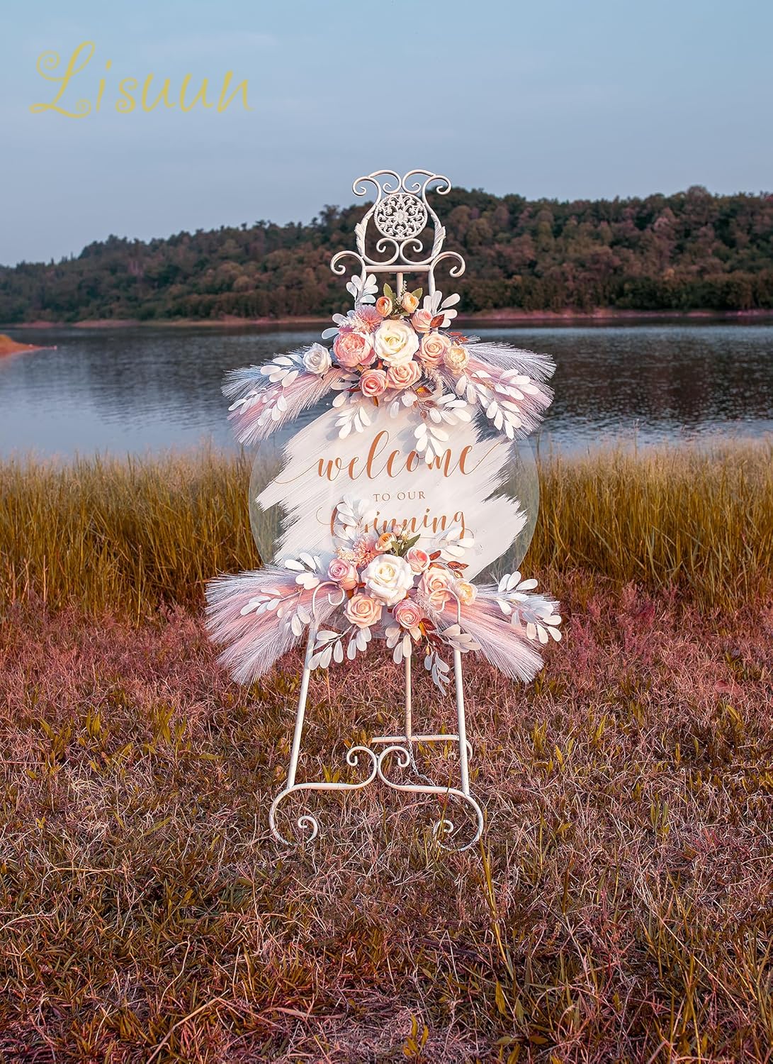 • Standard Size:The large flower swag design straightens measures 27.5" long x 11.8" wide(70*30cm), small flower tie measures 27.5" long x 11.8" wide(70*30cm).Exclusively made for reception backdrop and welcome ceremony sign.