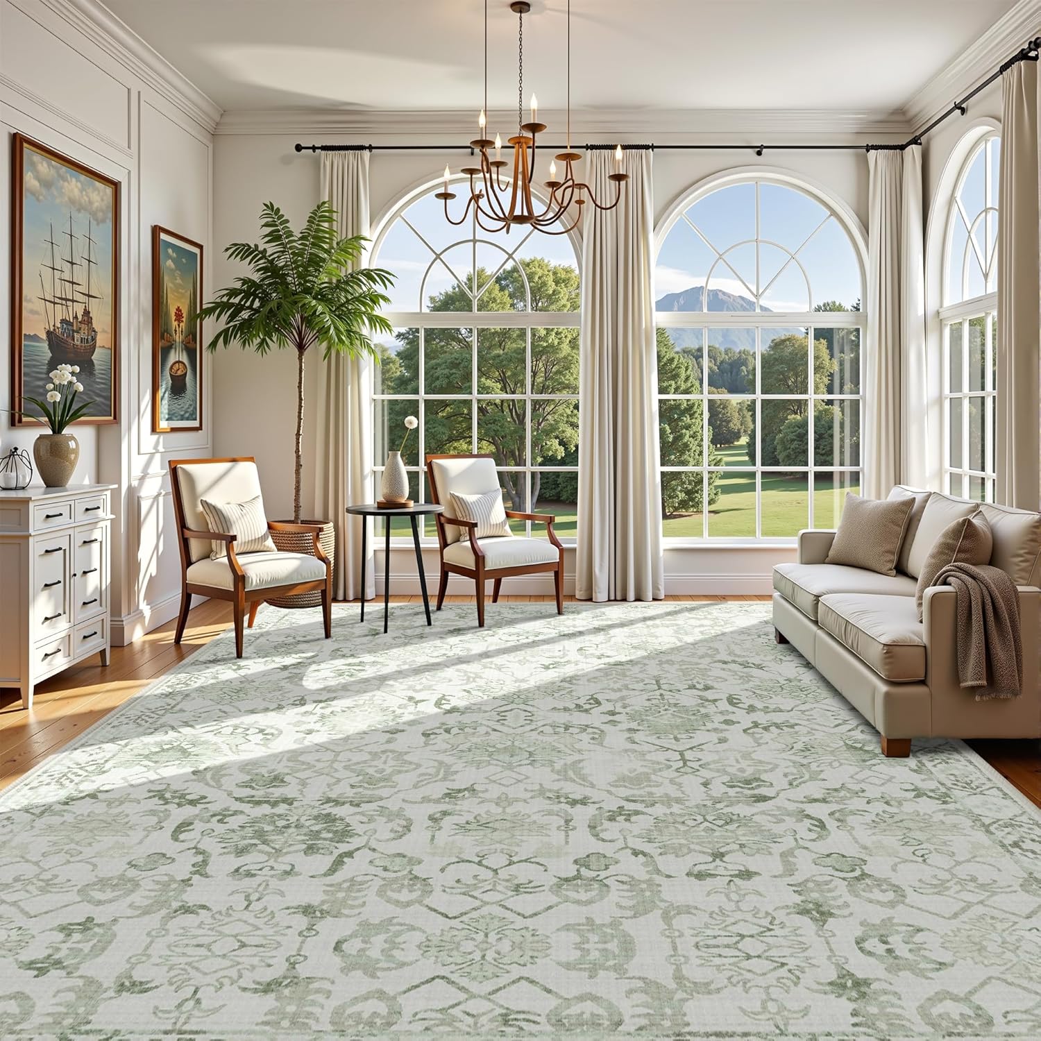 • Deerly Vintage 10x12 Rugs for Living Room: This area rug features trendy faded style and unique neutral distressed floral pattern, vintage tones combines the sage green and ivory color, creating a comfortable and warm family environment. Dorm carpets are suitable for living room, bedroom, dining room, office, etc.