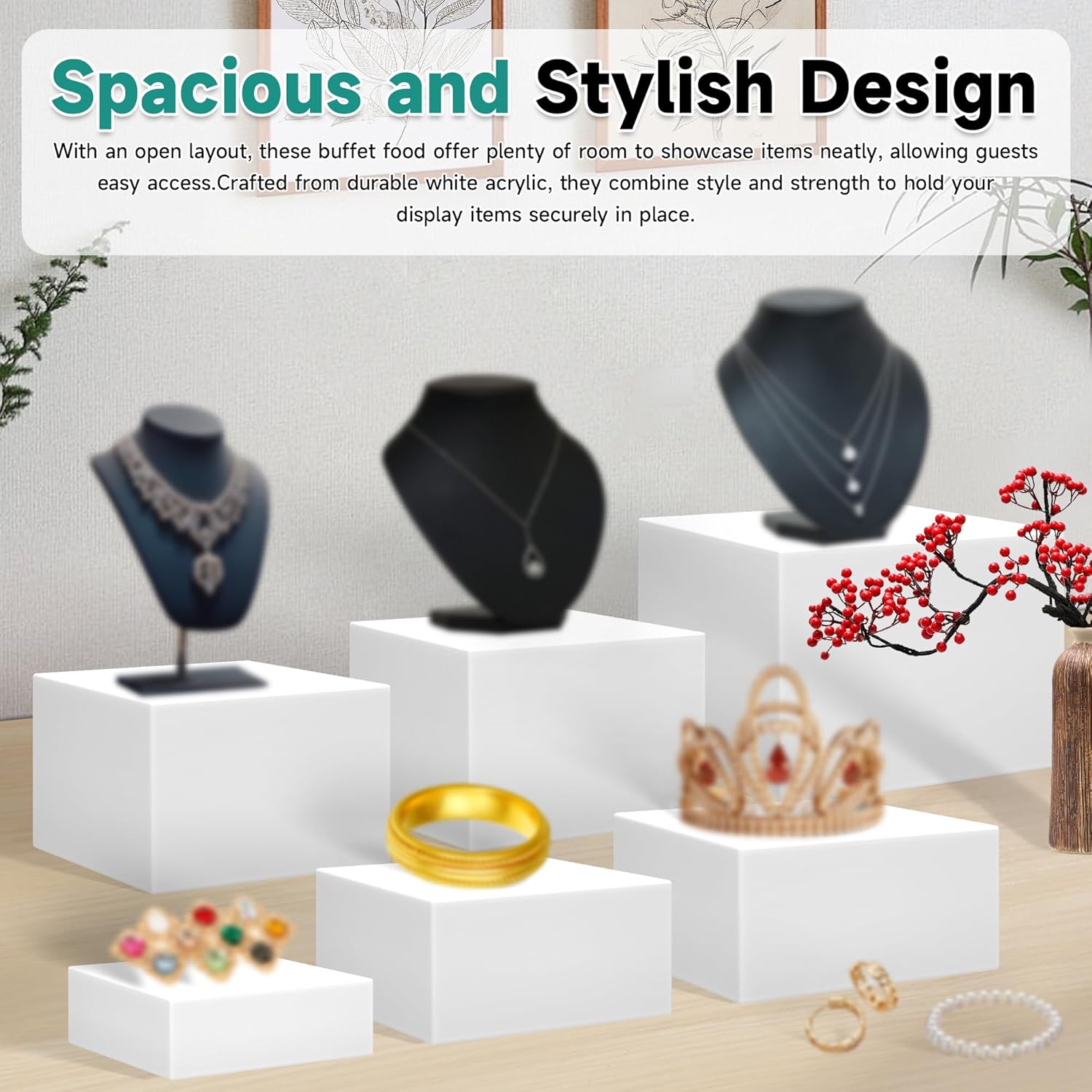 • Perfectly Proportioned Design Buffet risers crafted with an ideal balance of sizes—12-10-8 inches—each acrylic white acrylic risers brings a touch of elegance and harmony to any setup. Whether used on its own or stacked, it adds an eye-catching appeal to your presentation.