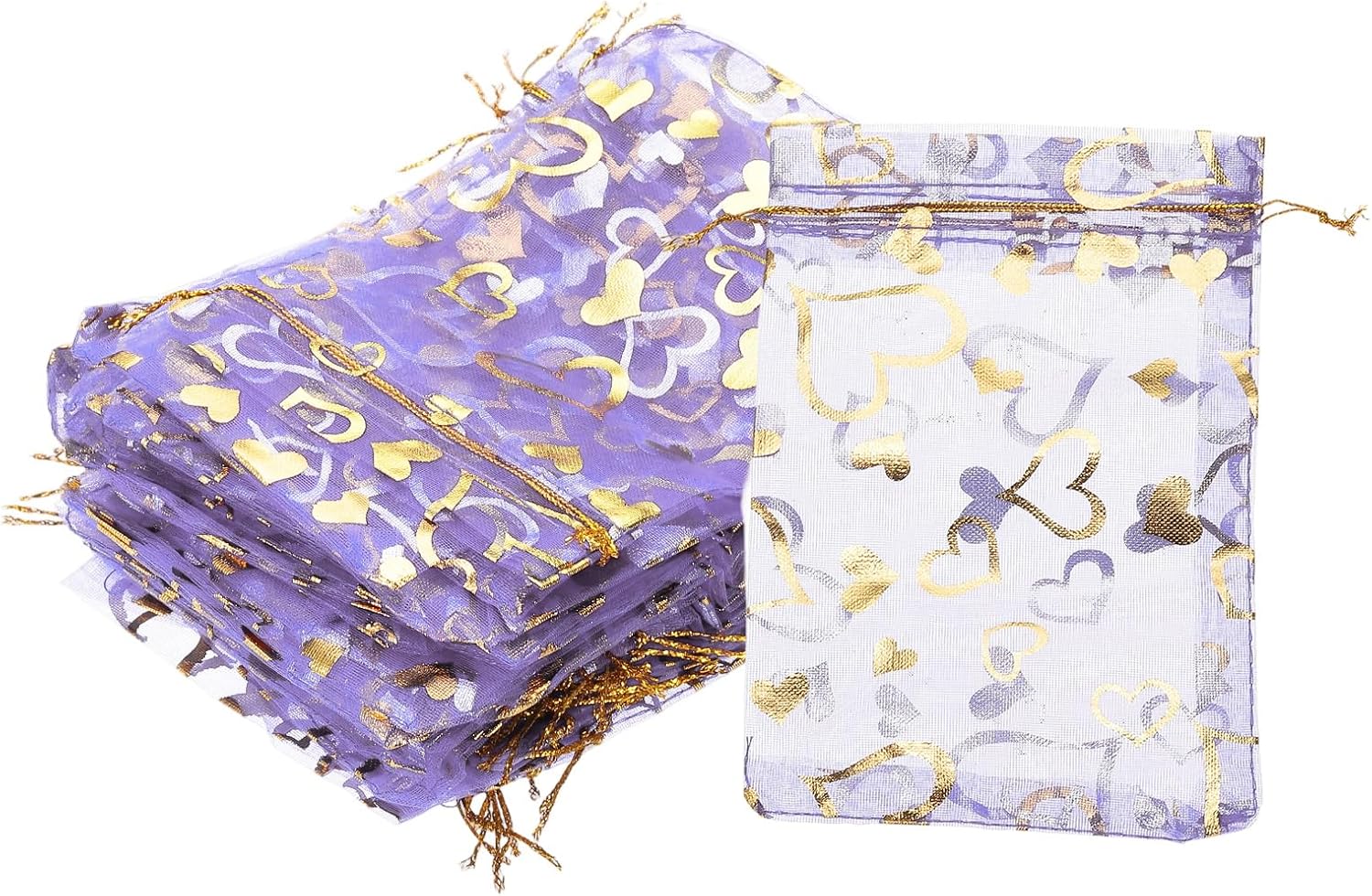 • Color: Purple; Material: Polyester; Size: 16x11 cm/6.3x4.33 Inch(L*W); Packing List: 100 Pcs x Heart Printed Organza Bags (NOTE: Please confirm the size before choosing our product)