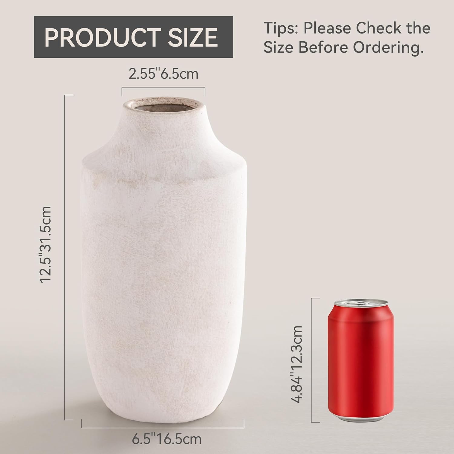 Mitt&Ditt Ceramic Flower Vase, 12.5 inch Tall Off-White Vase, Large Decorative Terracotta Vases, Farmhouse Rustic Pottery Vases for Home Decor, Living Room, Table