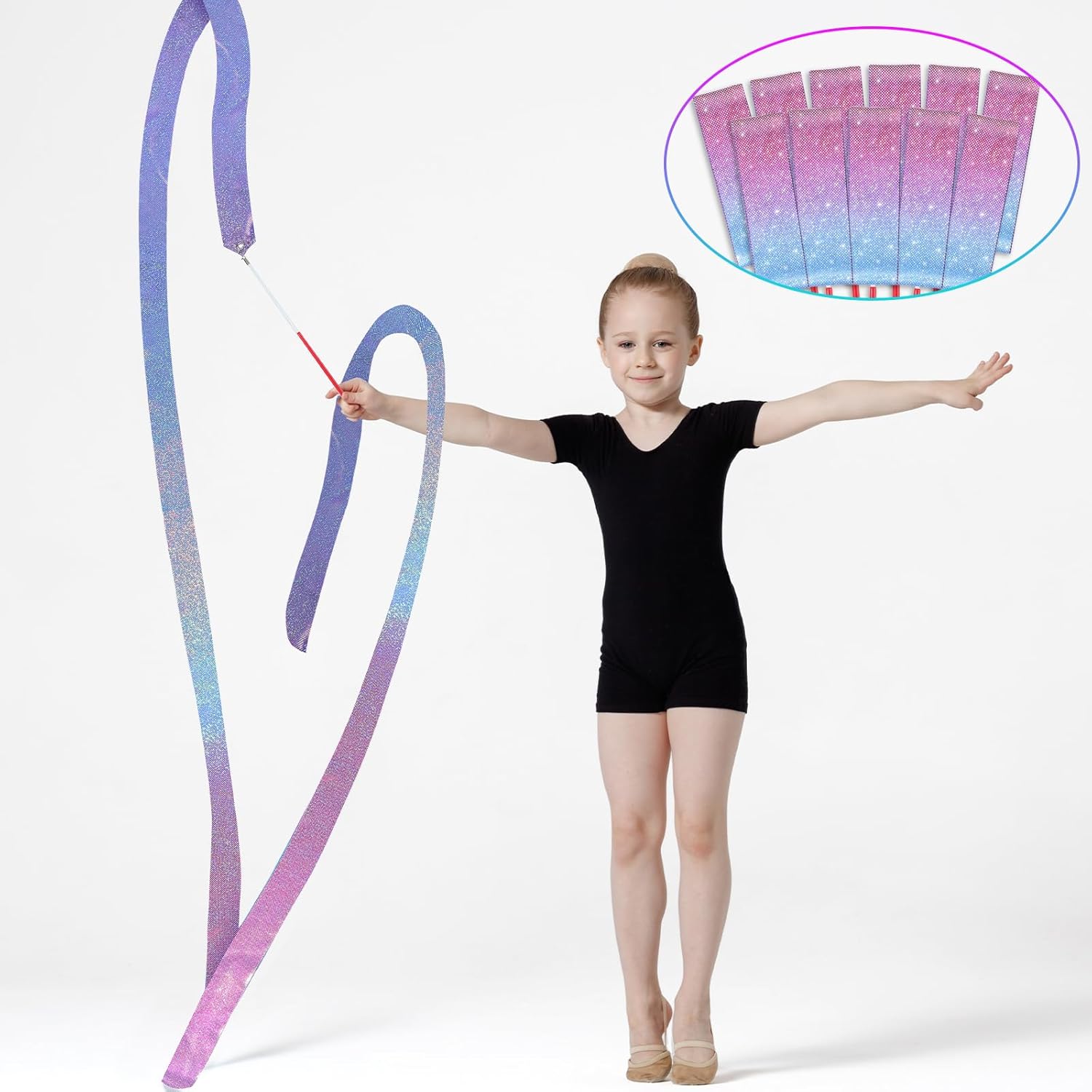 • Exquisite design: The dance streamers showcase a charming blue-purple gradient, blending beauty and style. Their glittering surface makes them even more appealing. Whether waved or spun on sunny, breezy days, the sparkling dance ribbon streamers create a stunning, dynamic display.