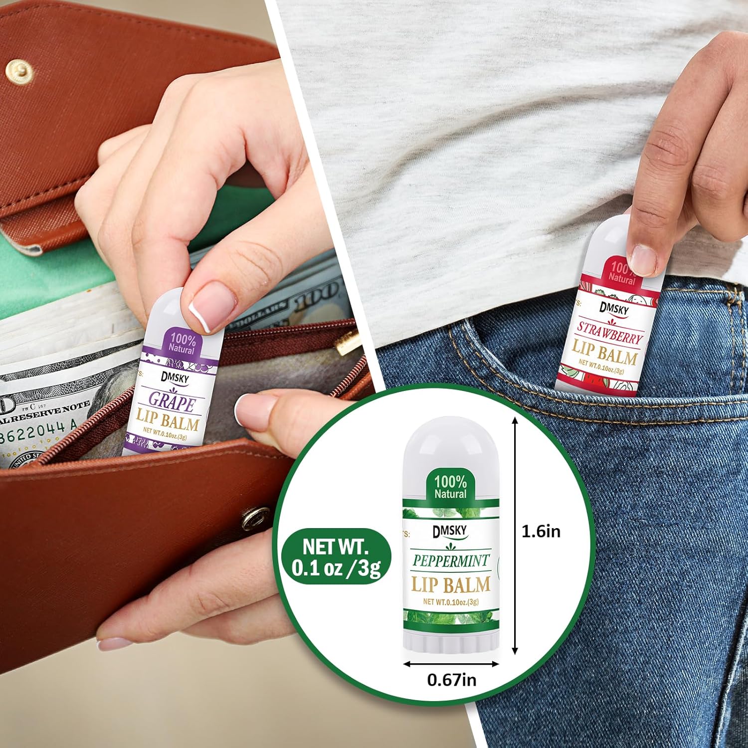 DMSKY Mini Lip Balm 60 Pack, Natural Lip Balm Bulk with Vitamin E and Coconut Oil, Moisturizing Lip Balms for Dry Cracked lips - 10 Flavors