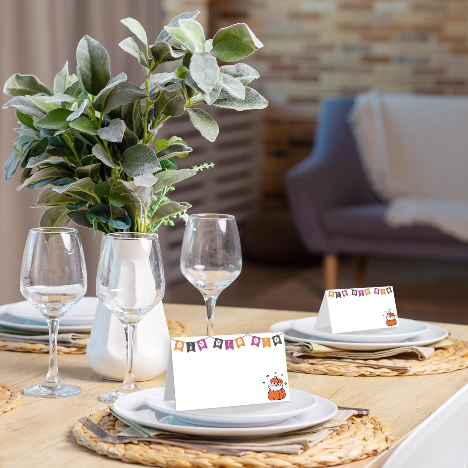 25 Pack Halloween Place Cards, Editable Name Cards for Table Setting, Boo Ghost Tent Cards Food Label for Dinner Party, Bridal Shower, Wedding, Baby Shower and Events -T38