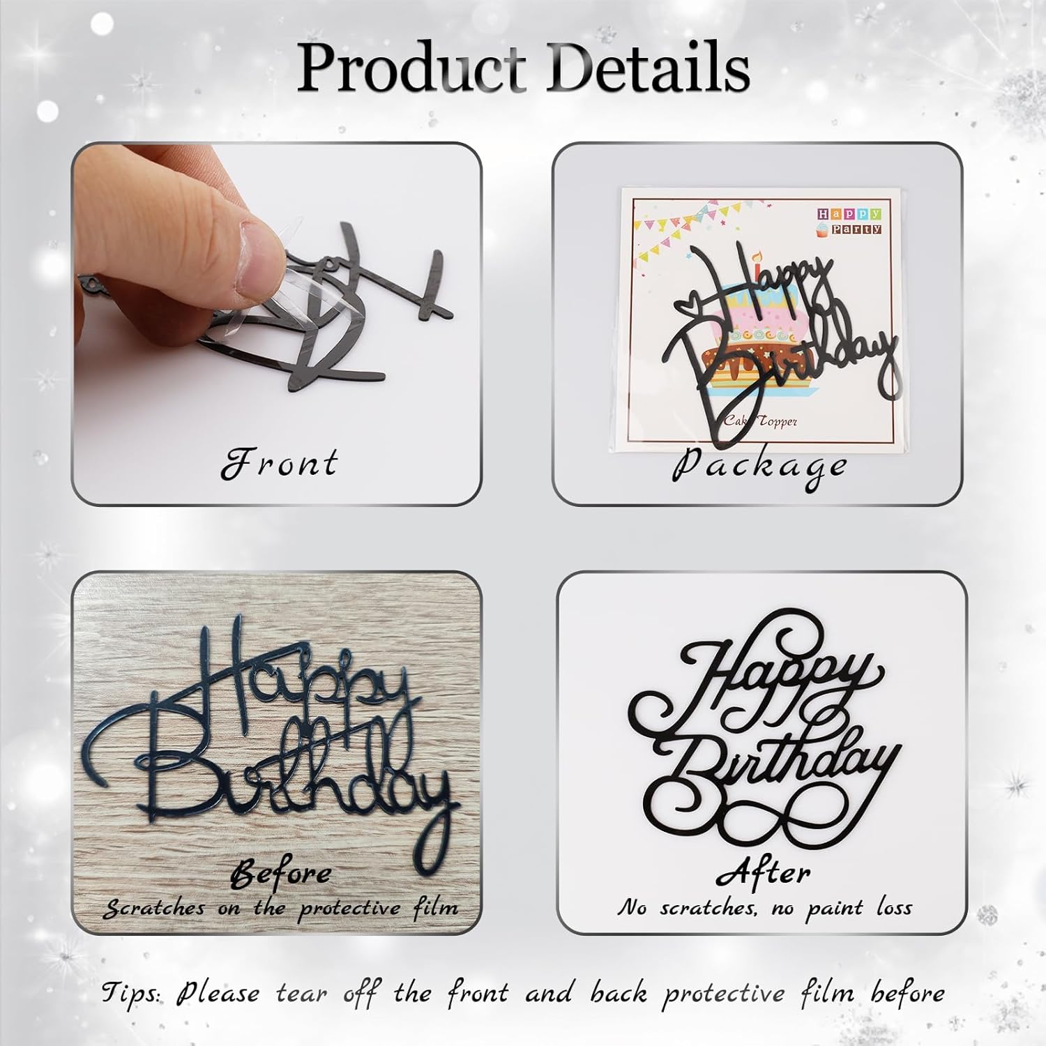 10 PCS Black Birthday Cake Topper Mirror Acrylic Happy Birthday Cake Toppers Double-Sided Dessert Decorations for Girls Women's Party Supplies