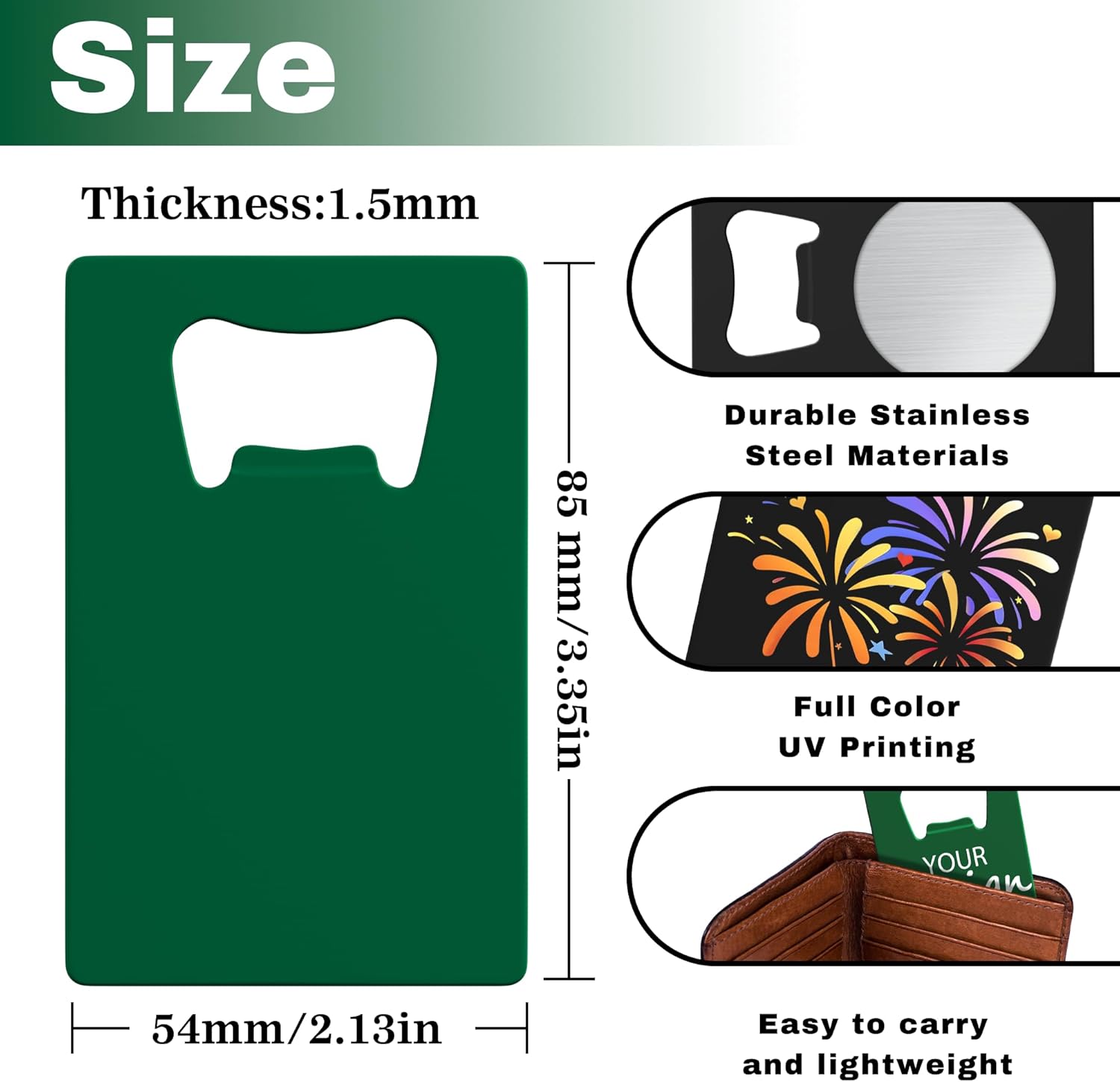 4-100 Pcs Personalized Bottle Opener, Custom Stainless Steel Credit Card Bottle Opener, Full Color Print for 6 Color, Design Your Text Logo for Bar, Wedding, Anniversaries, Party (Green)