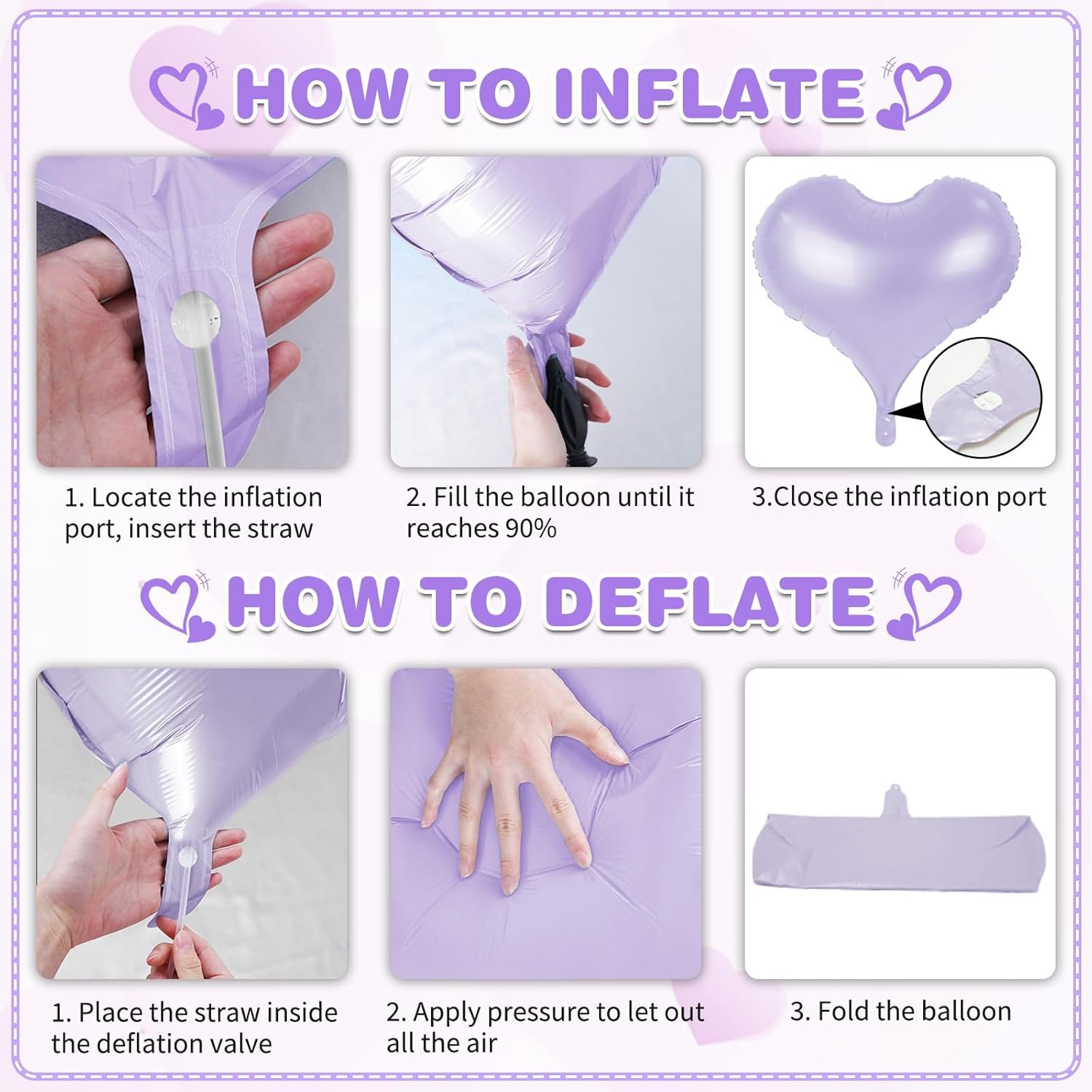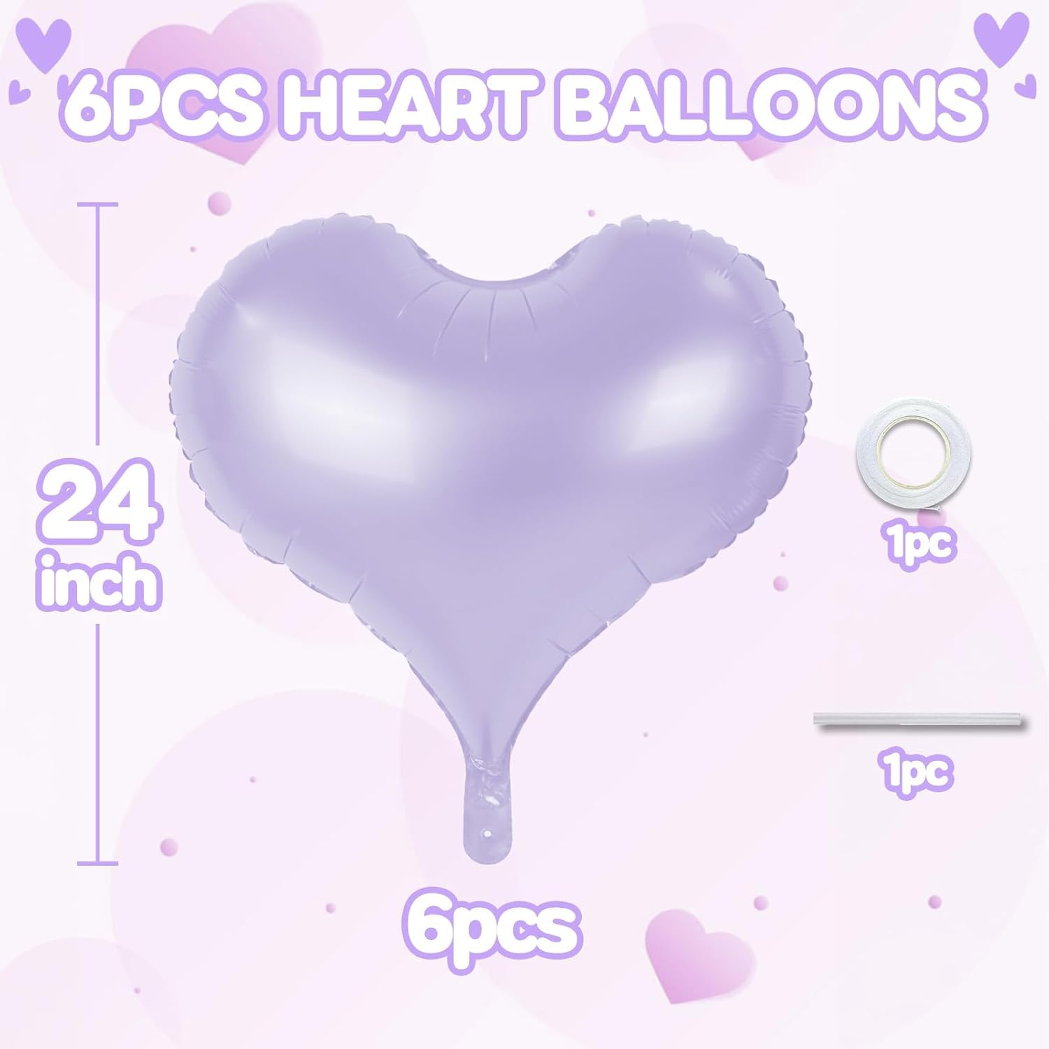 • 24 Inches Heart Balloons - Package contains 6 pcs purple heart balloons, 1pc straw and 1pc ribbon.The purple heart shaped balloons are ideal for any party. 24 inch is big and special enough to decorate your party.