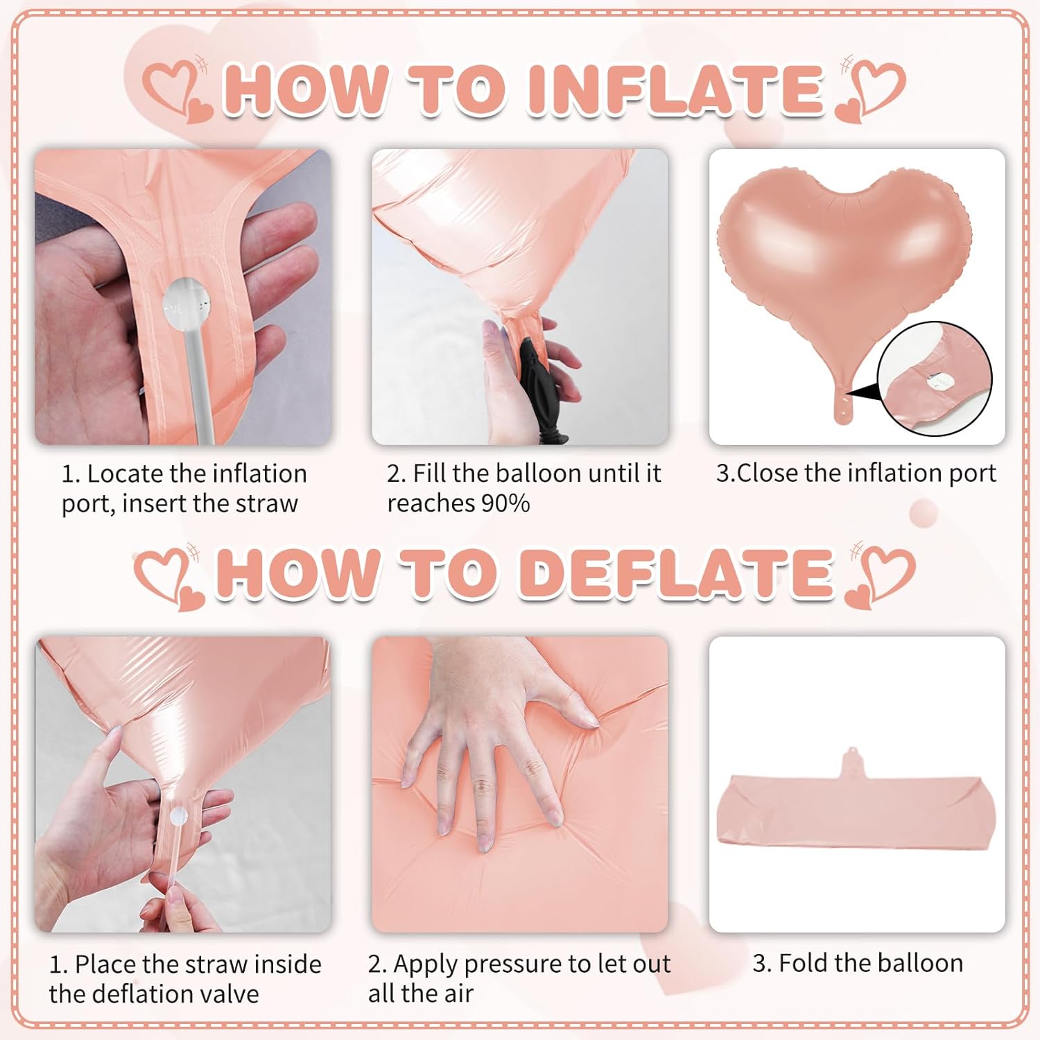 • Easy to Use - Effortlessly inflate our heart shaped foil balloons using the included straw. (If you want a floating effect, you can use heliumοΌ‰Simply pinch the self-sealing valve when full. It can be easily hung on the wall, ceiling or balloon garland, and it looks more advanced as a photo-taking tool!