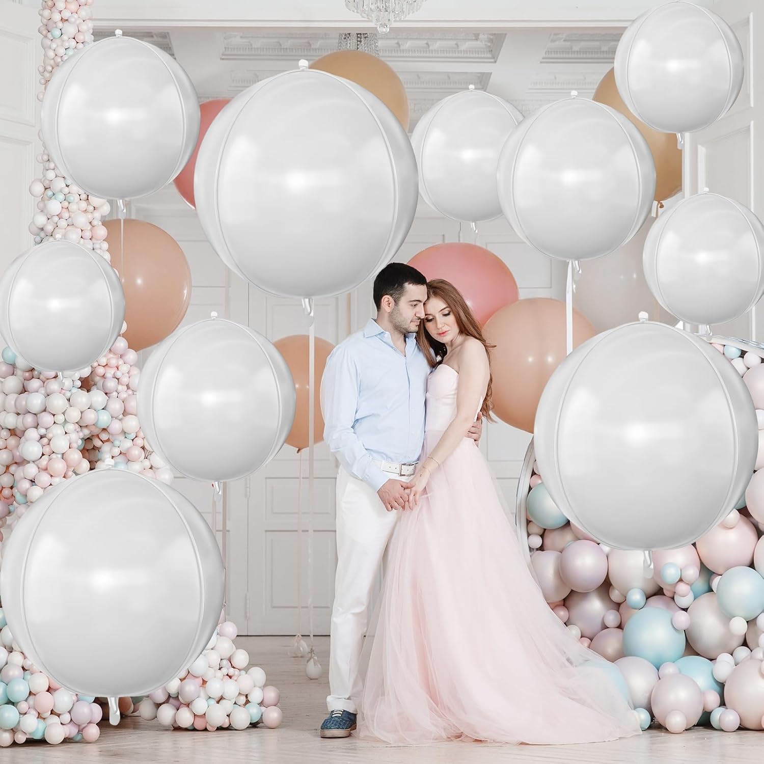 • Package: You will receive 12pcs 4D matte white round foil balloon, 3pcs 22inch + 4pcs 15inch + 5pcs 10inch + 1 straw + 1 roll of ribbon. Different sizes balloons in can meet your party needs. 10inch mini size balloons do not support helium filling and floating. The classic white balloons are perfect for any white-themed party.