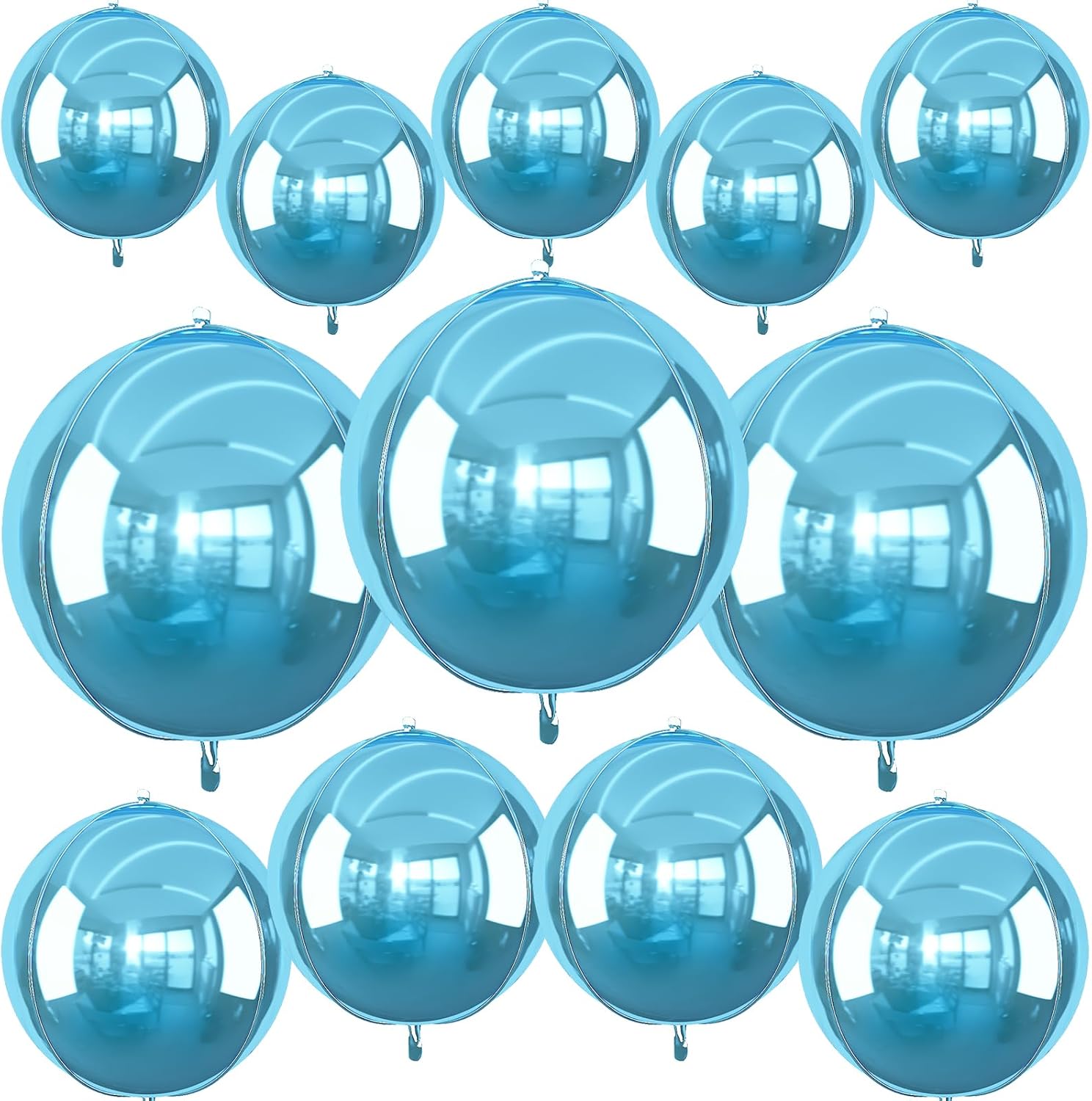 • Package: You will receive 12pcs 4D light blue round foil balloon, 3pcs 22inch + 4pcs 15inch + 5pcs 10inch + 1 straw + 1 roll of ribbon. Different sizes balloons in can meet your party needs. 10inch mini size balloons do not support helium filling and floating. The classic solid blue chrome balloons are perfect for any blue-themed party.
