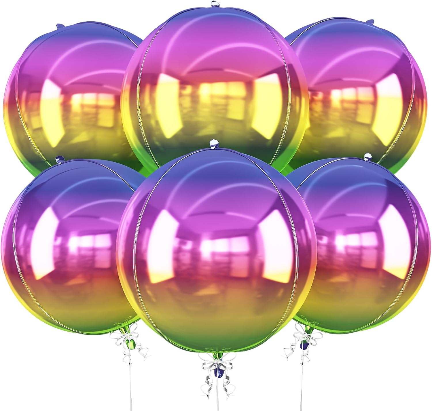 6Pcs Gradient Rainbow Round Foil Balloons, 22" Large Helium Colorful Ball Balloon, Metallic Multicolor Iridescent Mylar Balloon for Birthday Graduation Wedding Anniversary Disco Prom Party Decorations