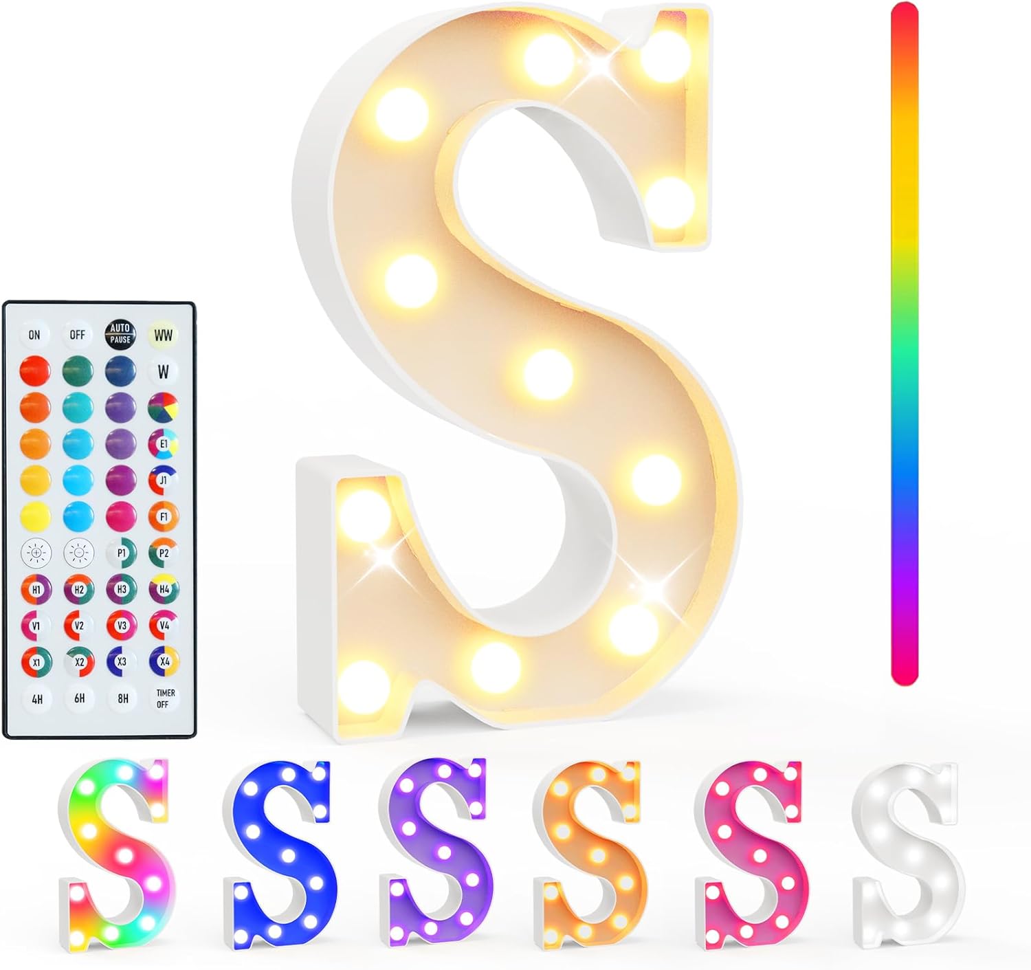 Pooqla Colorful Light Up Letters with Remote, Upgraded 35 Colors LED Marquee Letters, RGB Lighted Letter for Girls Teenager Gift, Birthday, Party, Wedding, Night Light, Room, Bedroom Decor, Letter S