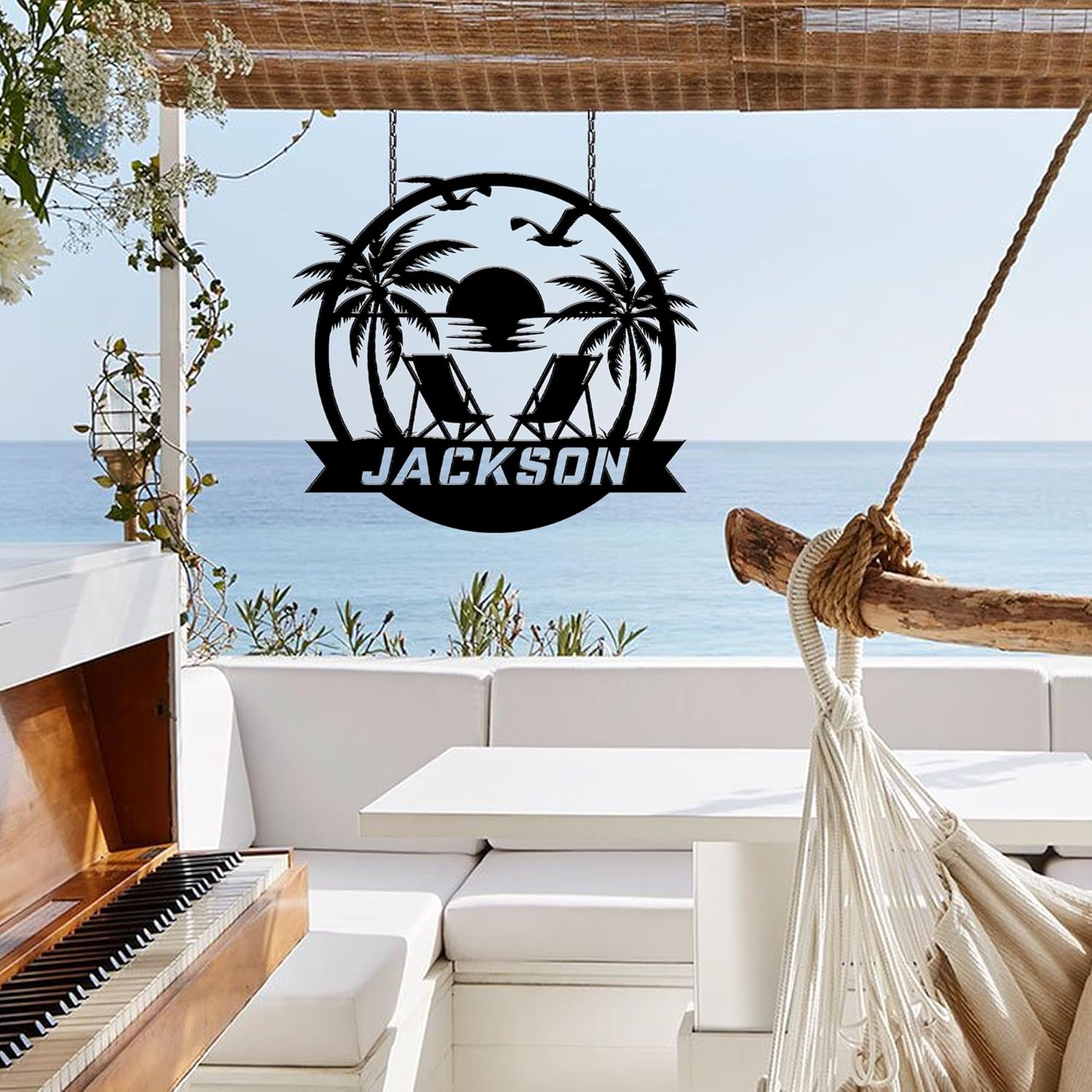 Personalized Beach Decor for Home, Custom Metal Sign Outdoor Nautical Decor, Palm Trees Coastal Wall Art, Family Last Name Sign, Housewarming Christmas Wedding Gifts