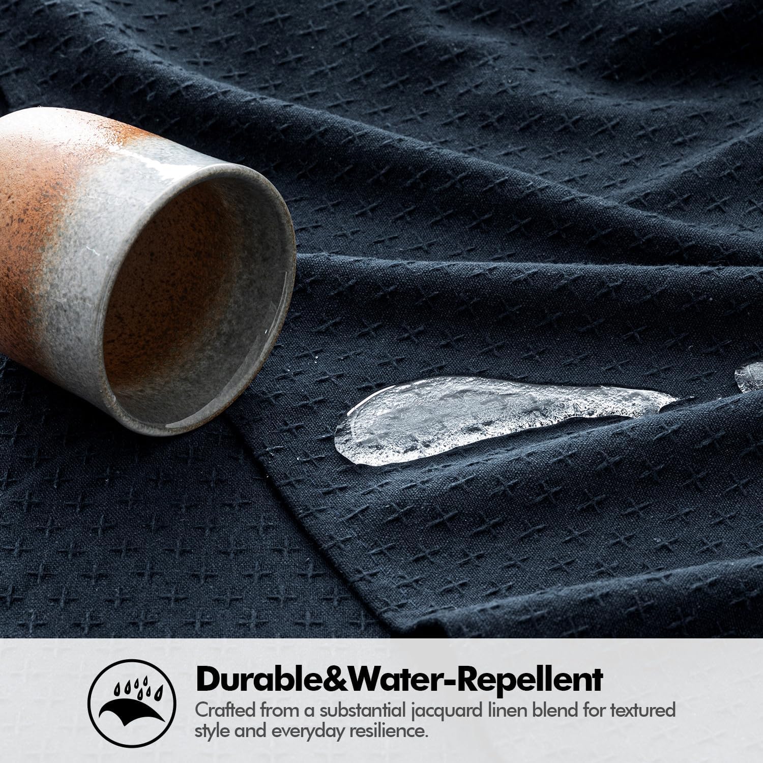 • Elegant Texture: Expertly woven from a heavy-duty cotton-linen blend, 30% thicker than standard tablecloths. Designed with a refined cross-star jacquard weave, it offers a luxurious and elegant look. Navy is bold and refined, creating depth and sophistication for any dining setting.