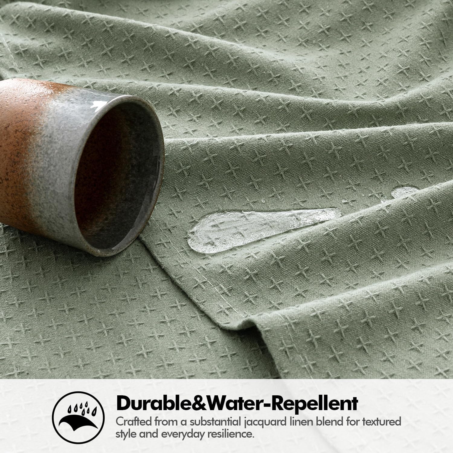 • Elegant Texture: Expertly woven from a heavy-duty cotton-linen blend, 30% thicker than standard tablecloths. Designed with a refined cross-star jacquard weave, it offers a luxurious and elegant look. Sage Green is subtle and earthy, bringing a calming, natural touch to your meals.