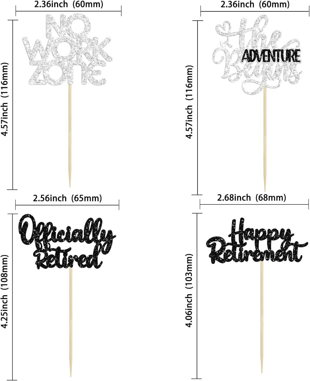• 【Upgrade Quality】: 24Pcs Happy Retirement Cupcake Toppers are made of 300g card stock and 100% food grade bamboo stick, not easy to deform and fade, smooth edges without burrs, makes Happy Retirement cupcake toppers give you a wonderful visual enjoyment. It is durable enough for long lasting use.