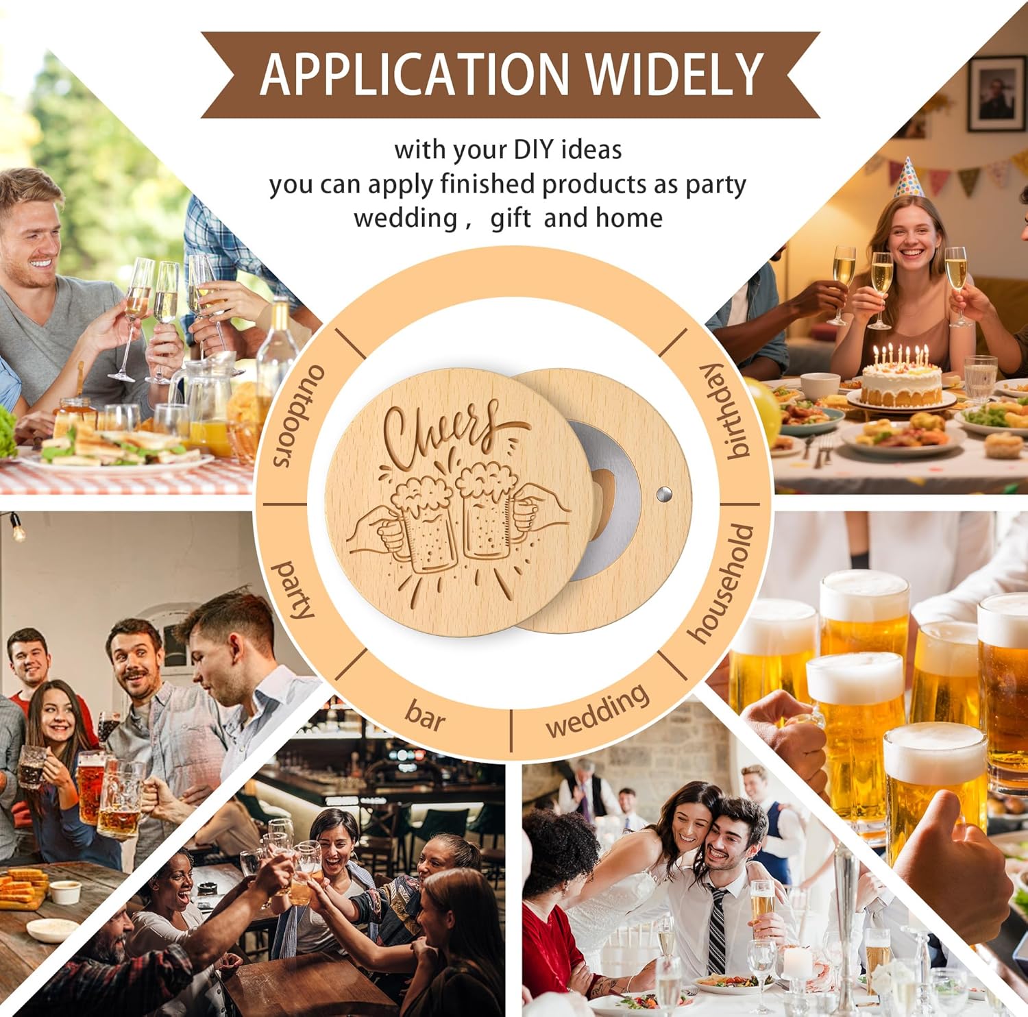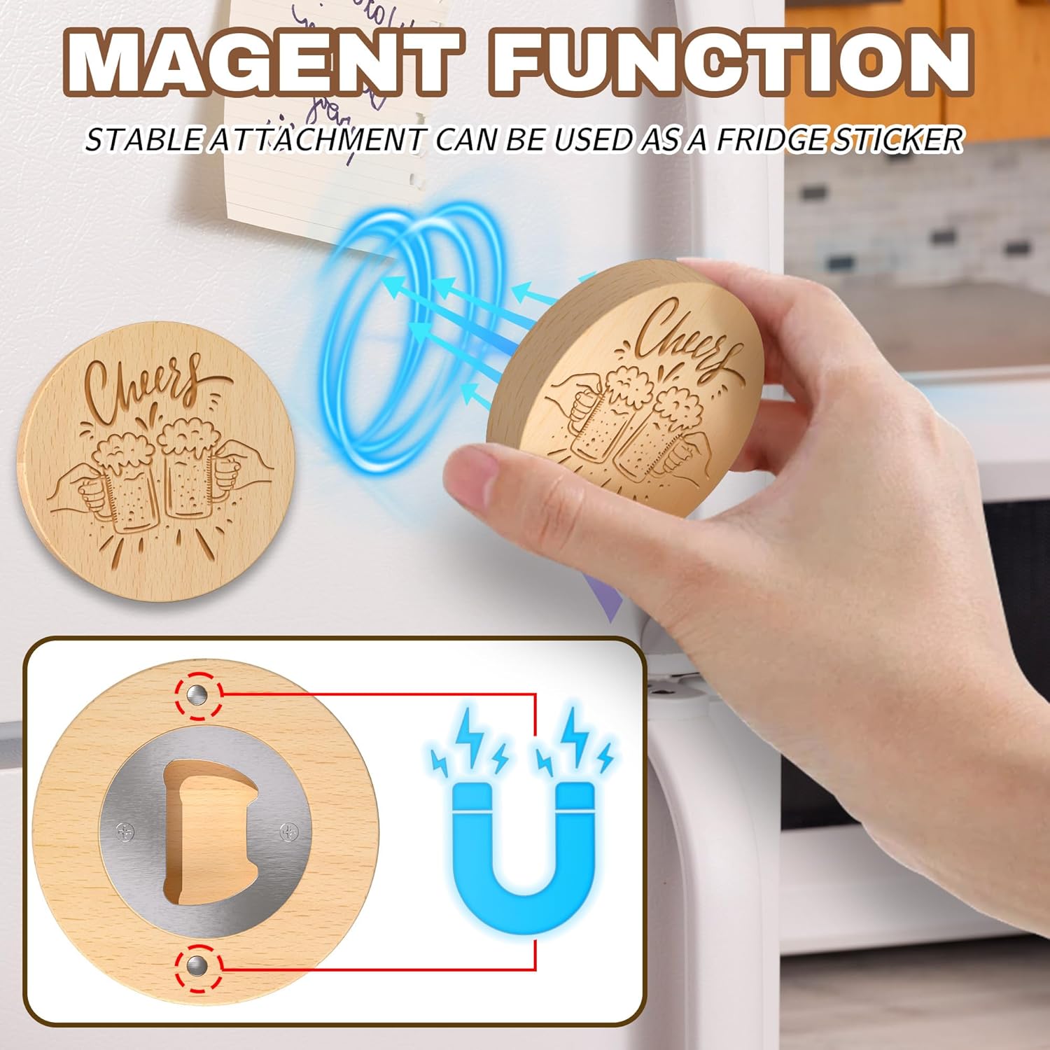 8 Custom Magnetic Bottle Opener Refrigerator, Personalized Engraved Wood Beer Openers, Wooden Round Fridge Magnet for Beer Lover Wedding Guest Bars Parties Men Gift Father's Day (Round)