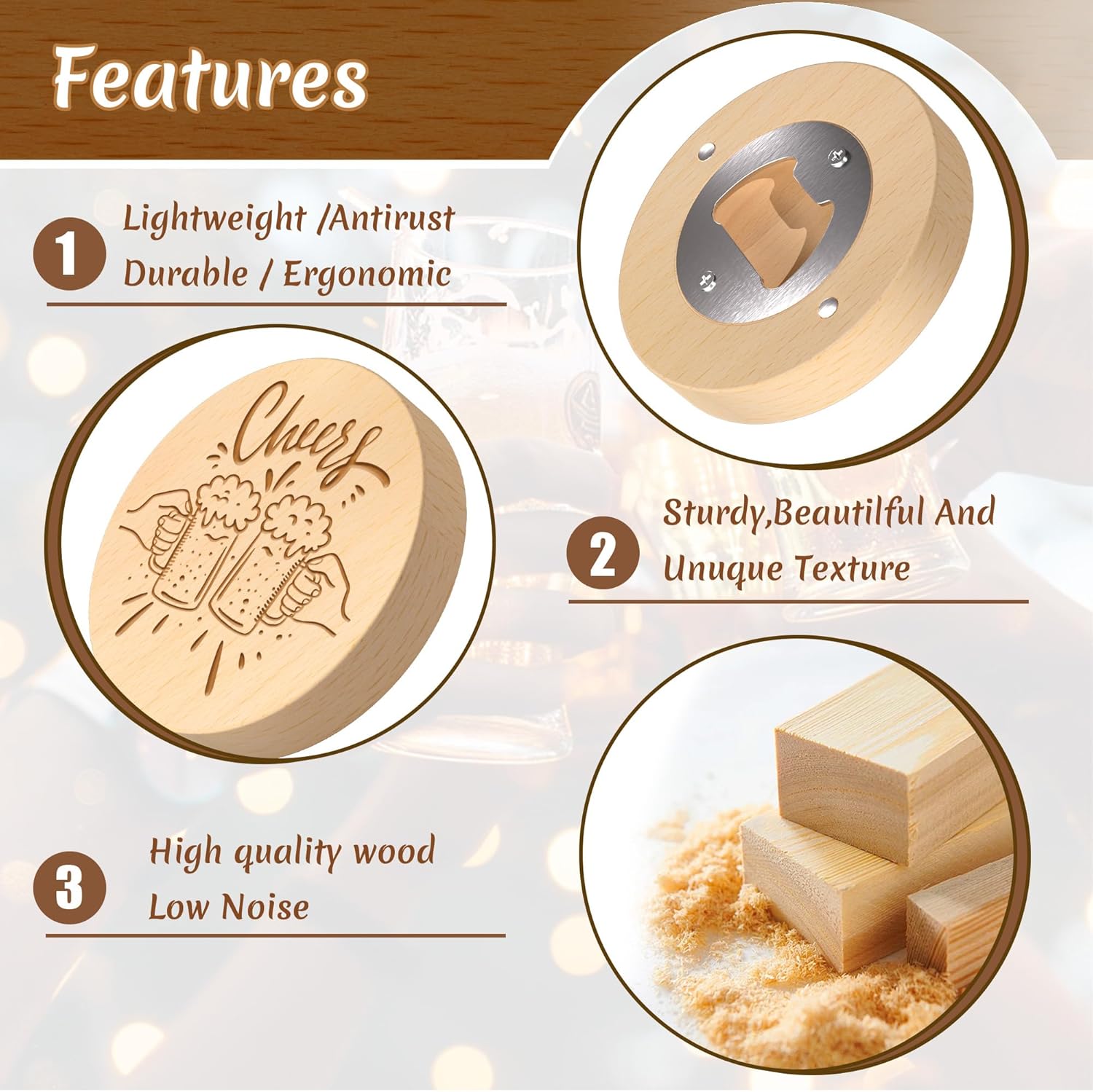 • Durable Magnetic Bottle Opener: The magnetic bottle opener has a diameter of 2.56 inches and a thickness of 0.47 inches, and has a strong magnetic attraction that will not slip off. With the exquisite magnetic design, these bottle openers can be firmly attached to the front and sides of the refrigerator for easy storage.