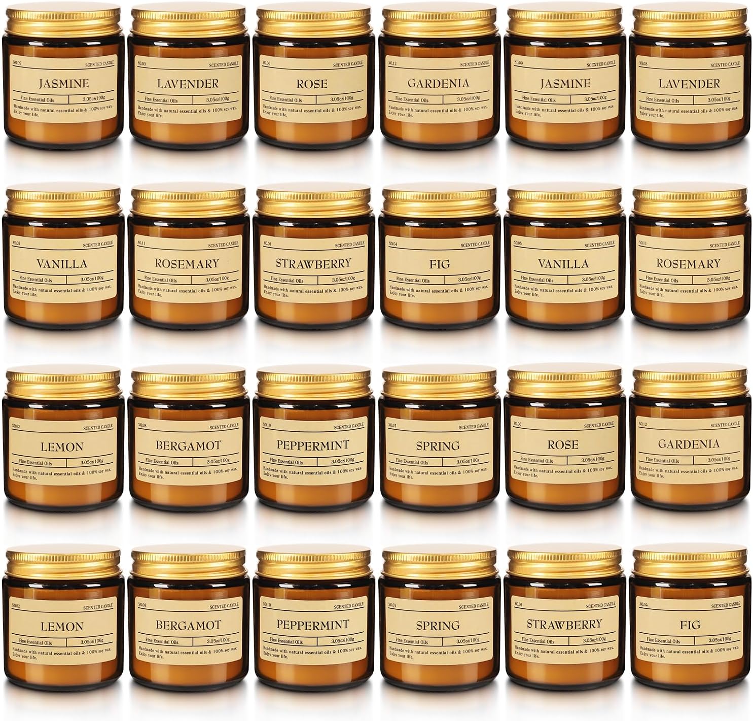 24-Pack Scented Candle Gift Box - 12 scents to Choose from (Rose/Lavender/Lemon/Vanilla), Natural Soy Wax - Birthday, Halloween and Christmas,Gift for Best Friends, Male and Female Friends