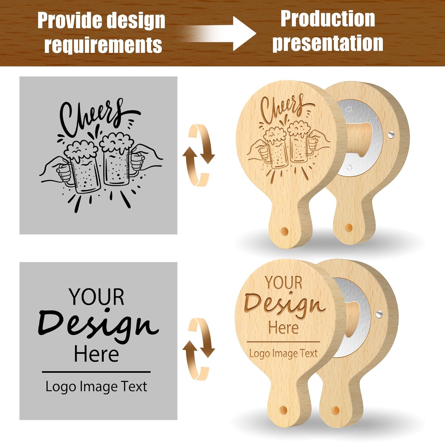 • Laser Engraving Technology: Each bottle opener is engraved with a unique custom message or name using our advanced laser engraving technology. The laser engraving process ensures that the product is wear-free, and multiple processes are carefully polished with high precision, clear and natural texture, and exquisite craftsmanship.
