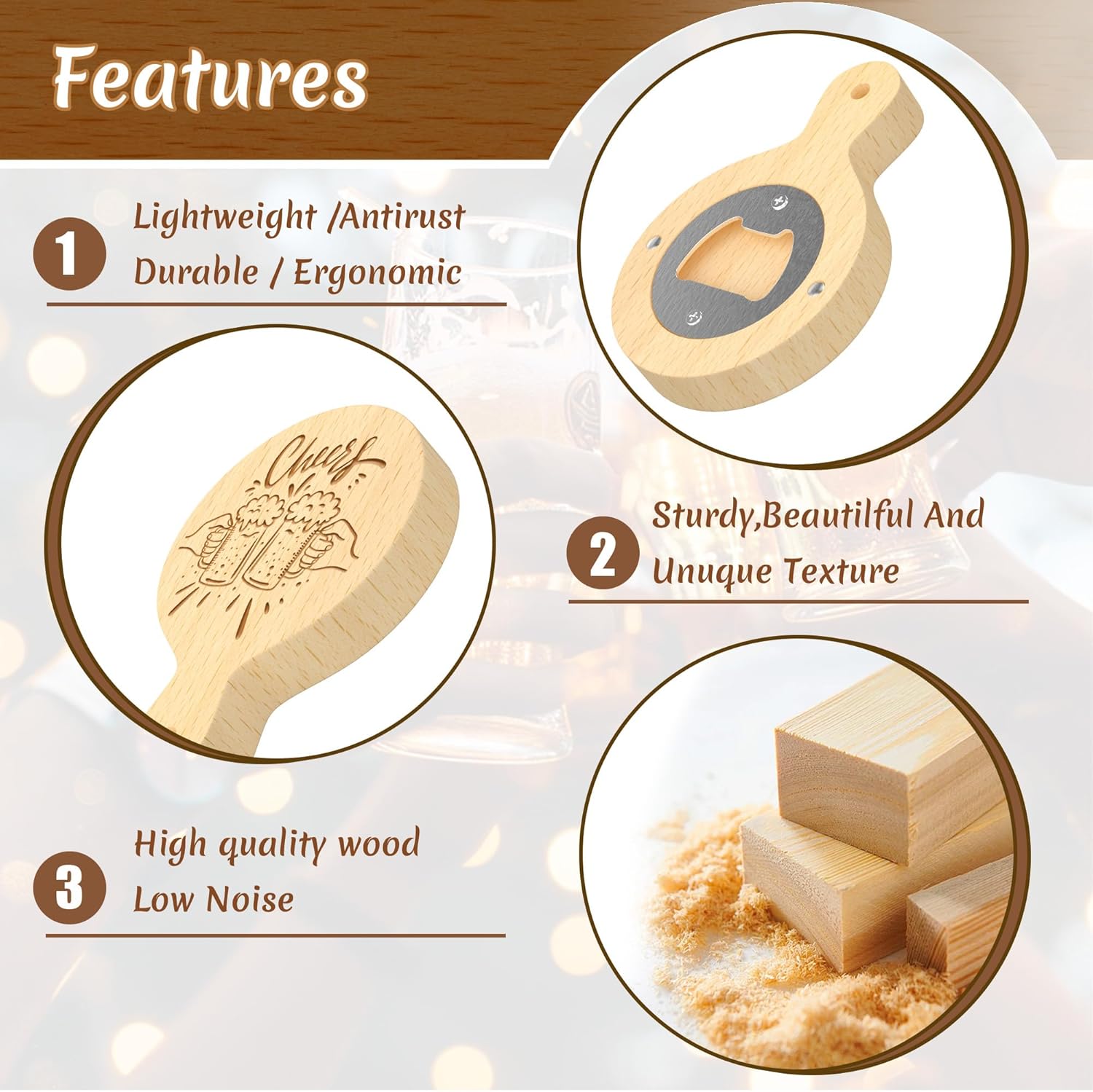 • Premium Material: Made of durable and eco-friendly wood, this bottle opener is durable and wear-resistant. Its sturdy design makes opening any wine bottle a breeze and is also a perfect choice for starting a conversation.