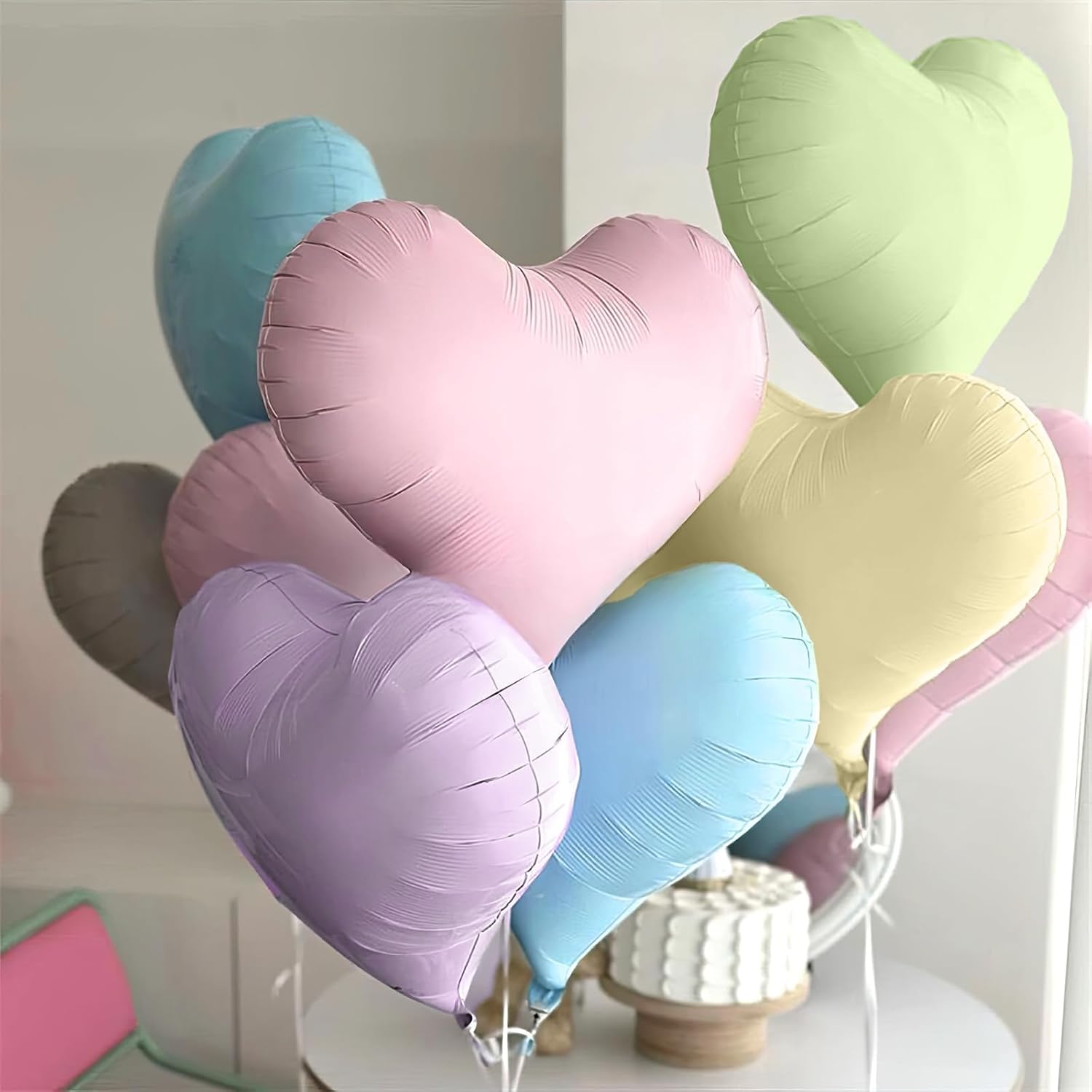 • Package: This set includes 6pcs of 24inch heart foil balloons(green*1,cream white*1,yellow*1,blue*1,pink*1,purple*1),1 ribbon,and 1 straw.The generous size makes these balloons perfect for transforming any space into a festive celebration venue, whether you're decorating for a wedding arch, photo backdrop, or party centerpiece.