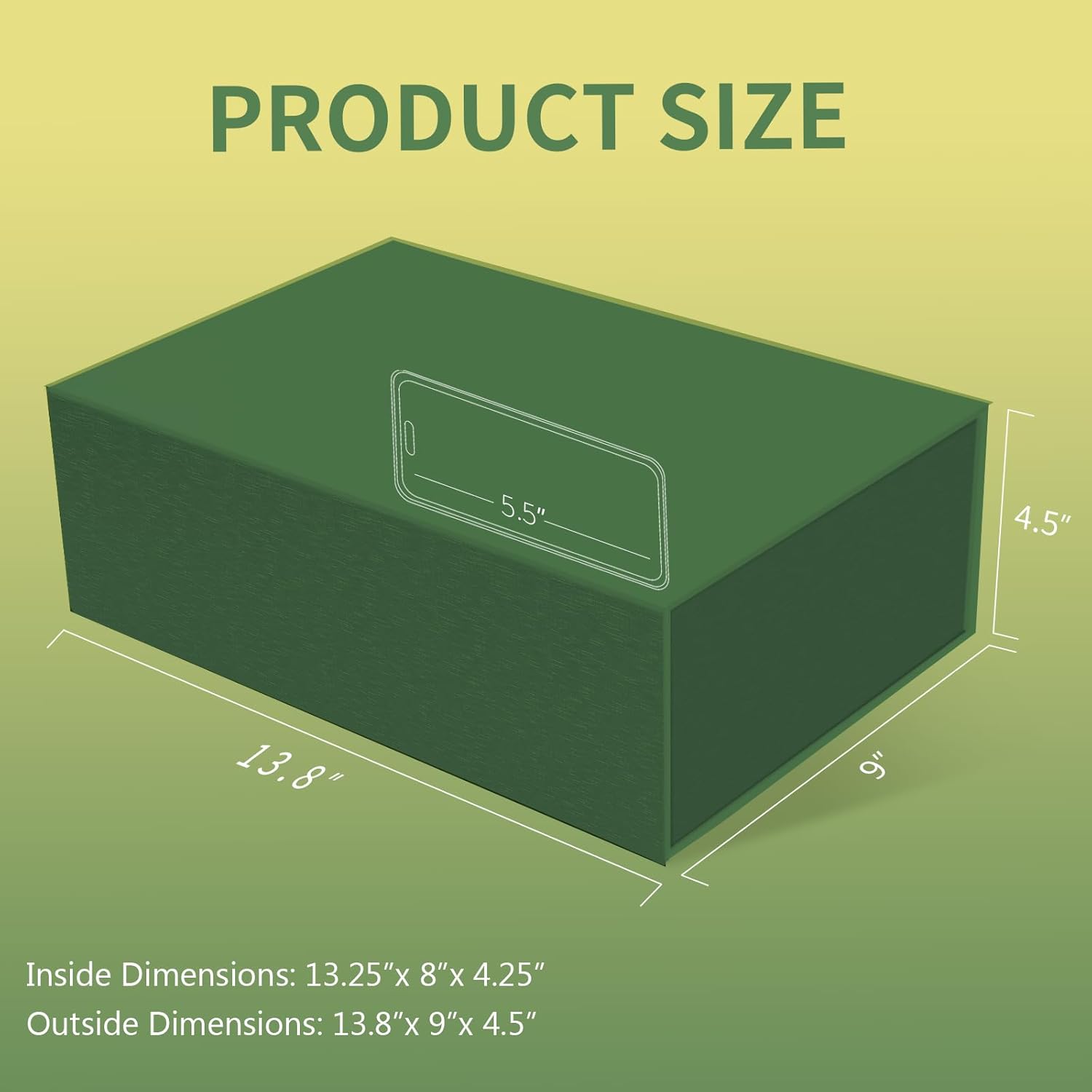 • FRIENDLY DESIGN: This green gift box has a sturdy magnetic closure that can be easily opened and closed again and again. The surface of the box is printed with special texture and elegant shape.