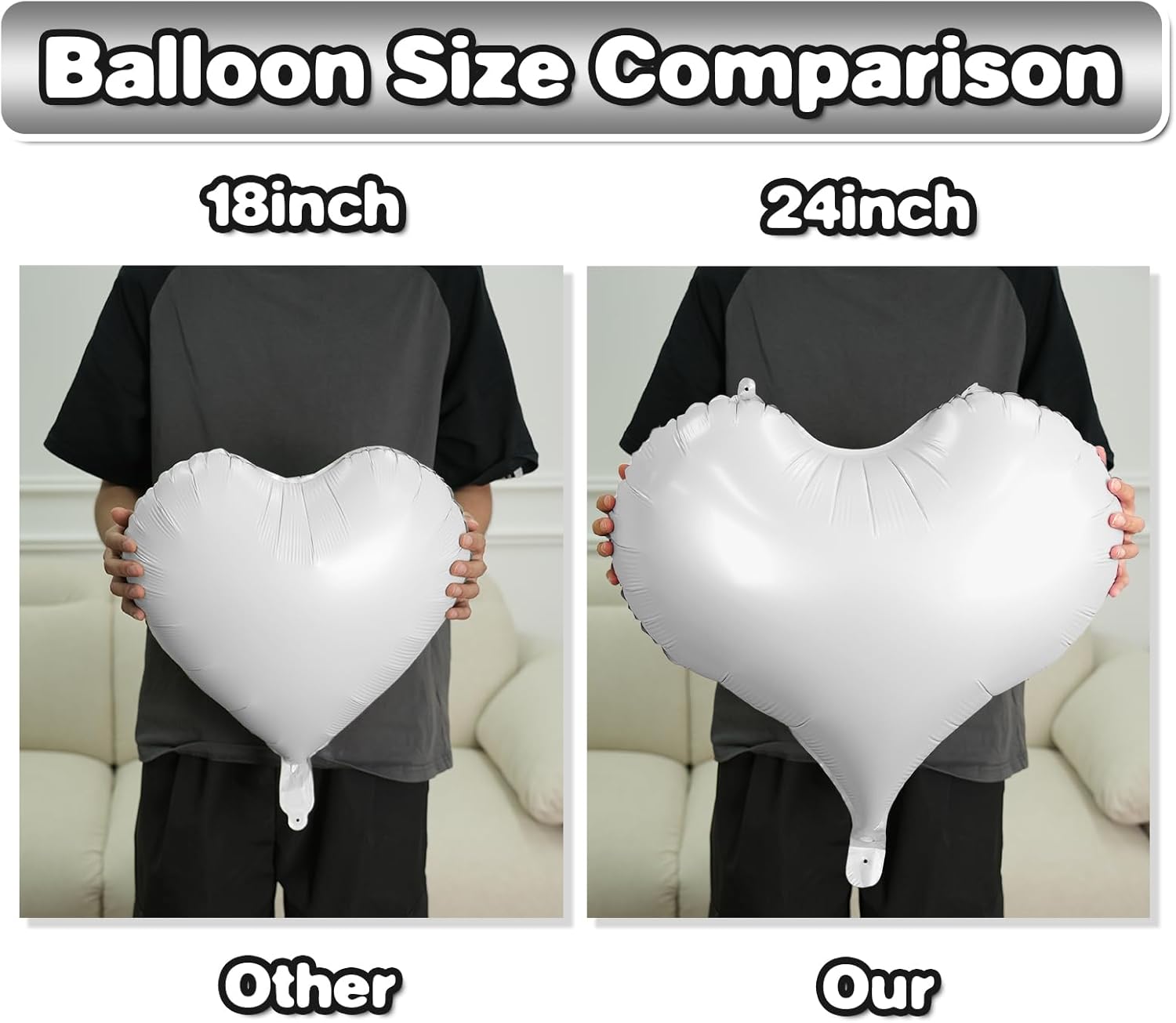 • Wide Application: These eye-catching 24inch heart balloons create the perfect ambiance for Valentine's Day romance, wedding receptions, anniversary parties, birthday parties, baby showers, engagement celebrations and more.