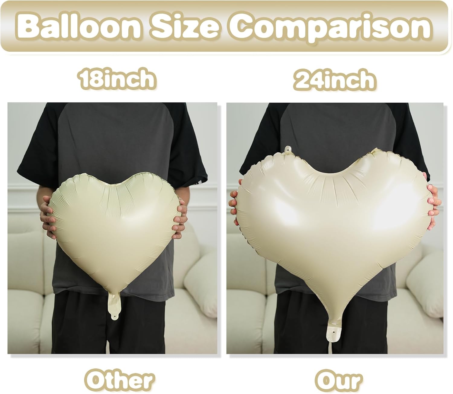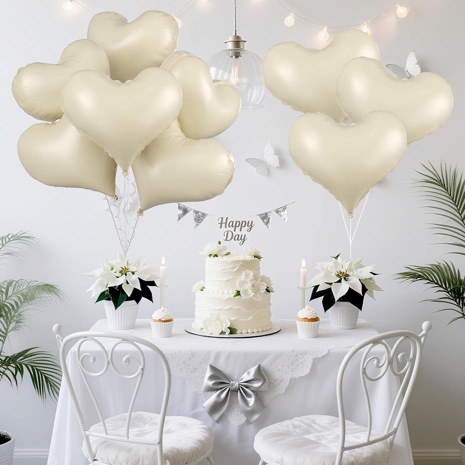 • Package: This set includes 6pcs of 24inch cream white heart foil balloons,1 ribbon,and 1 straw.The generous size makes these balloons perfect for transforming any space into a festive celebration venue, whether you're decorating for a wedding arch, photo backdrop, or party centerpiece.