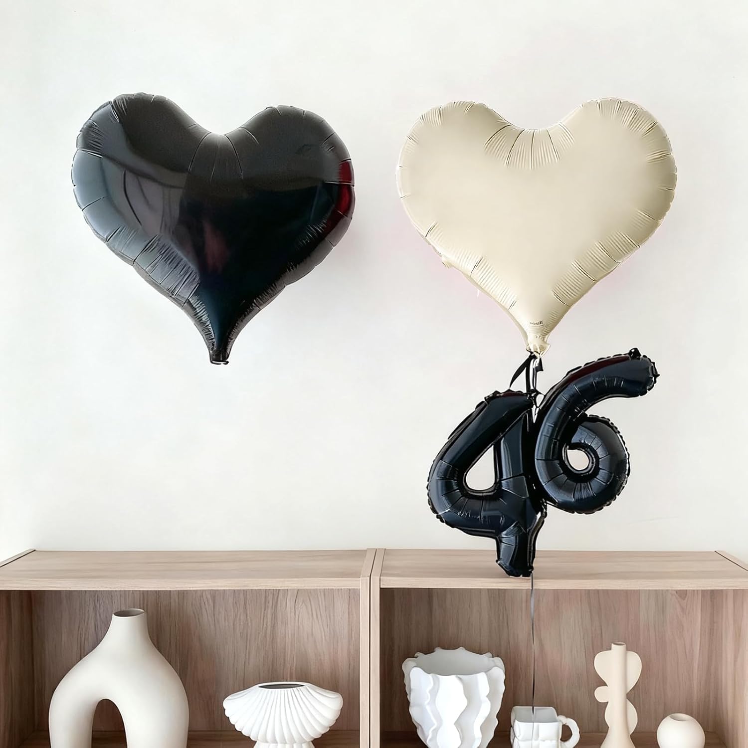 • Package: This set includes 6pcs of 24inch heart foil balloons(black*3,cream white*3),1 ribbon,and 1 straw.The generous size makes these balloons perfect for transforming any space into a festive celebration venue, whether you're decorating for a wedding arch, photo backdrop, or party centerpiece.