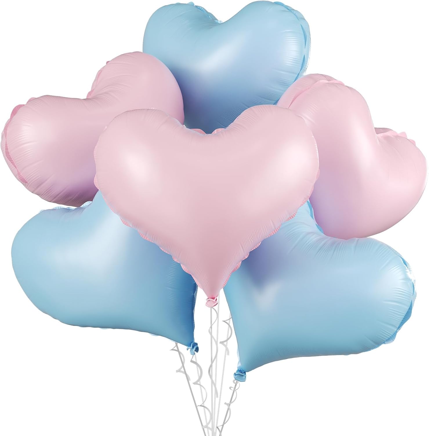 • Package: This set includes 6pcs of 24inch heart foil balloons(blue*3,pink*3),1 ribbon,and 1 straw.The generous size makes these balloons perfect for transforming any space into a festive celebration venue, whether you're decorating for a wedding arch, photo backdrop, or party centerpiece.