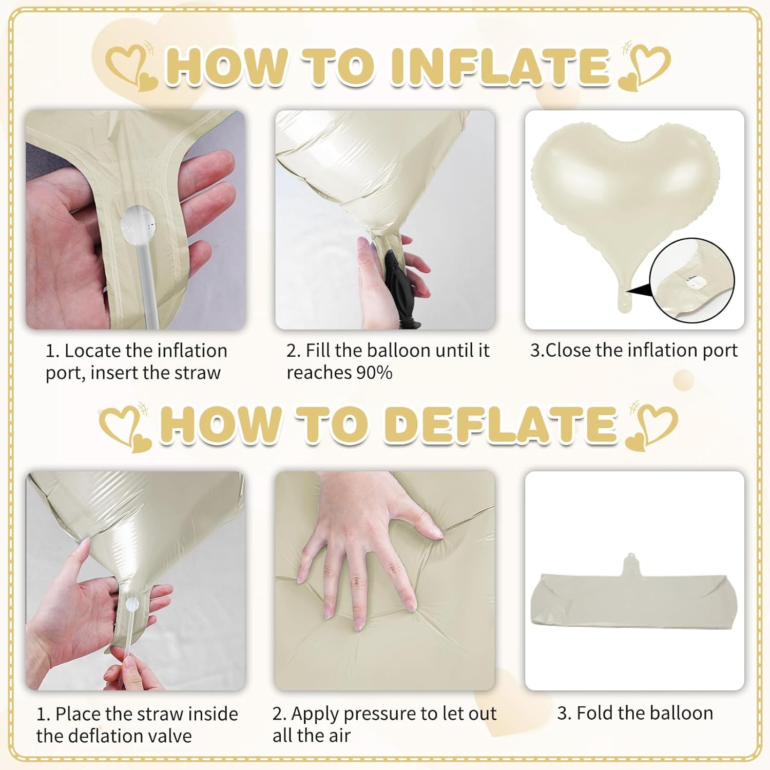 • 24 Inches Heart Balloons - Package contains 6 pcs cream and white heart balloons, 1pc straw and 1pc ribbon.The boho heart shaped balloons are ideal for any party. 24 inch is big and special enough to decorate your party.