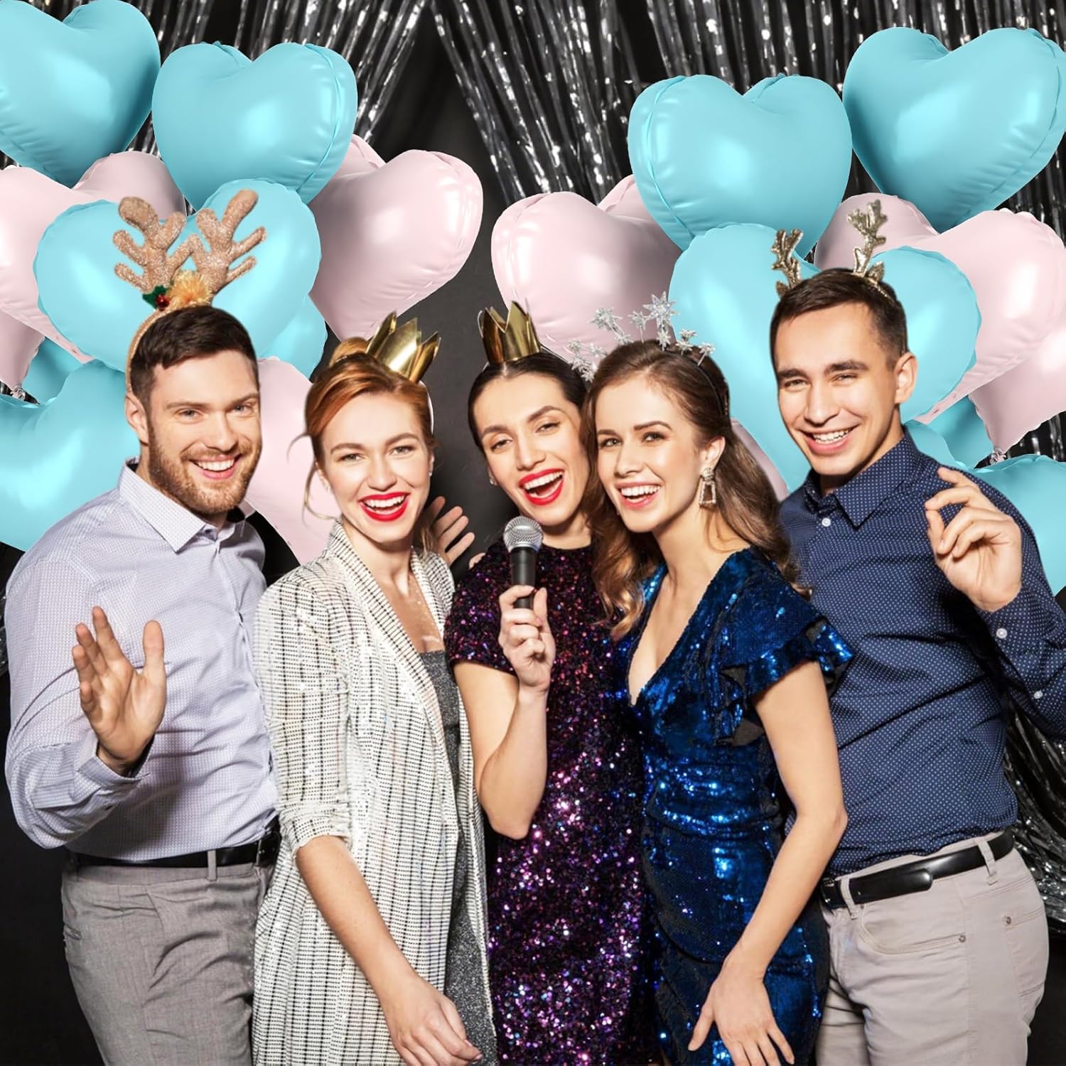 20 Inch Blue Pink Heart Balloons, 10 Pcs Baby Pink Heart Shaped Foil Balloons, Blue Love Helium Balloon for Valentines Day Bridal Shower Anniversary Wedding Birthday Party Decorations