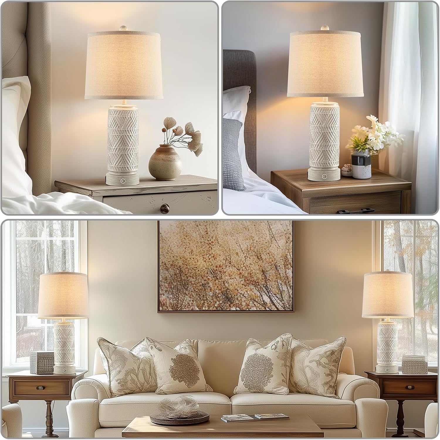 • 【3-Way Dimmable Touch Control】This pair of vintage farmhouse table lamps offer 3-level brightness options, which can meet your needs in different scenarios, just click the touch switch on the metal base to adjust the brightness. The built-in high quality sensor is very sensitive and can be turned on with just one touch. Perfect for decorating your bedroom, living room side table.