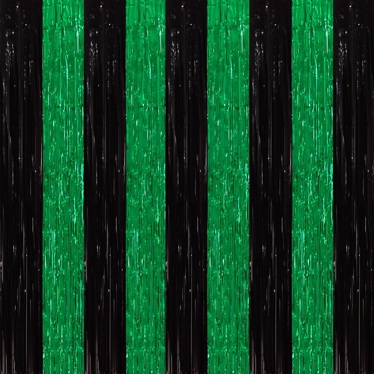 TONIFUL 2Pcs Black Green Door Streamers,Green Photo Booth Backdrop,Metallic Streamers Green Foil Fringe Curtains for Birthday,Christmas,New Year,St. Patrick's Day Party Streamers Decor