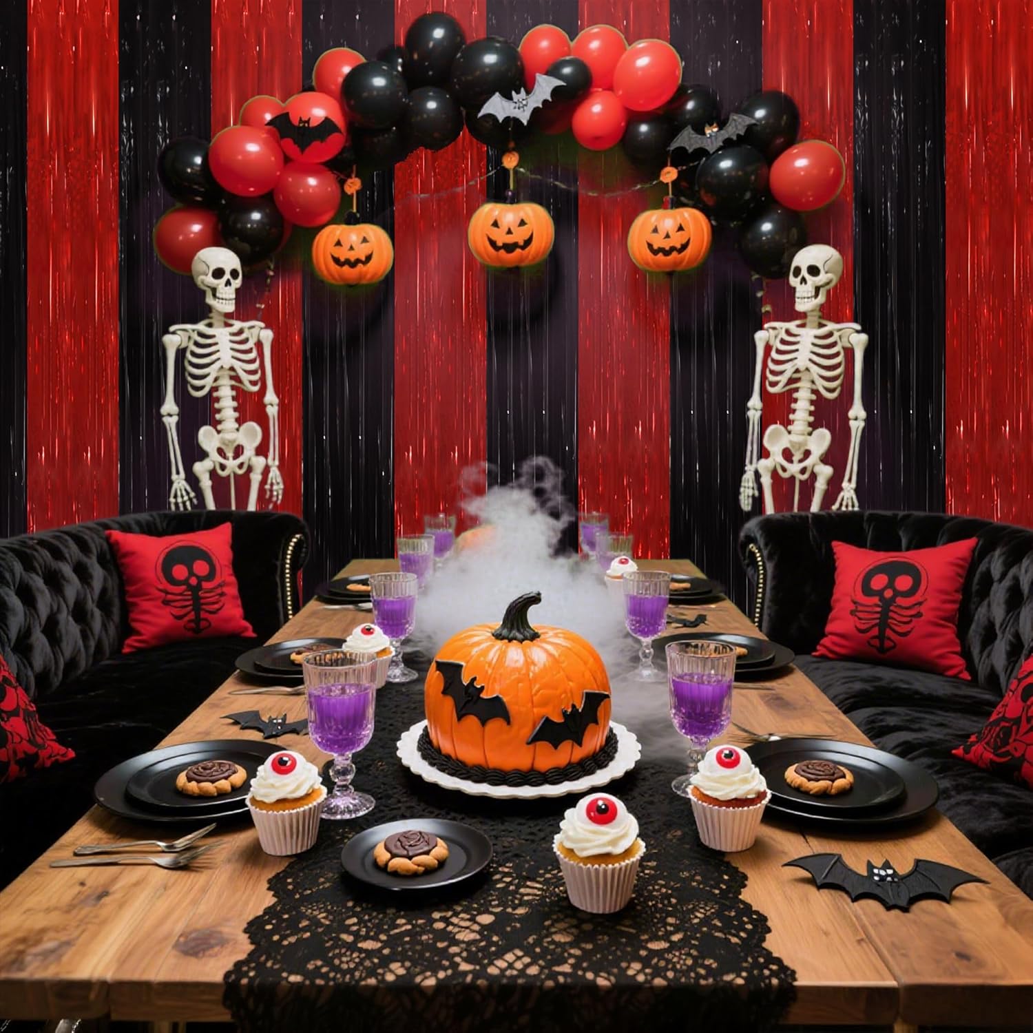 TONIFUL 2Pcs Black Red Door Streamers,Green Photo Booth Backdrop,Metallic Streamers Green Foil Fringe Curtains for Birthday,Christmas,New Year,Halloween,St. Patrick's Day Party Streamers Decor