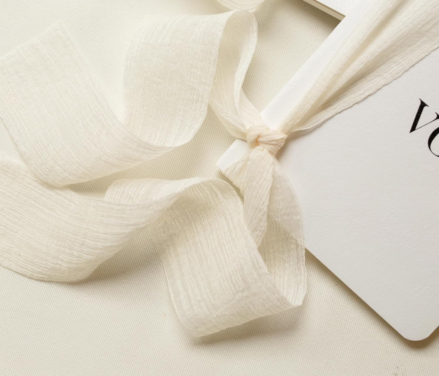 • Each vow book in our set measures 5.625 x 4 x .5 inches, making them pocket-sized for easy carrying. Crafted from high-quality materials, these softcover vow books offer durability with a sophisticated finish. The flowy ivory ribbon adds a touch of romance and softness against the texture of the book.