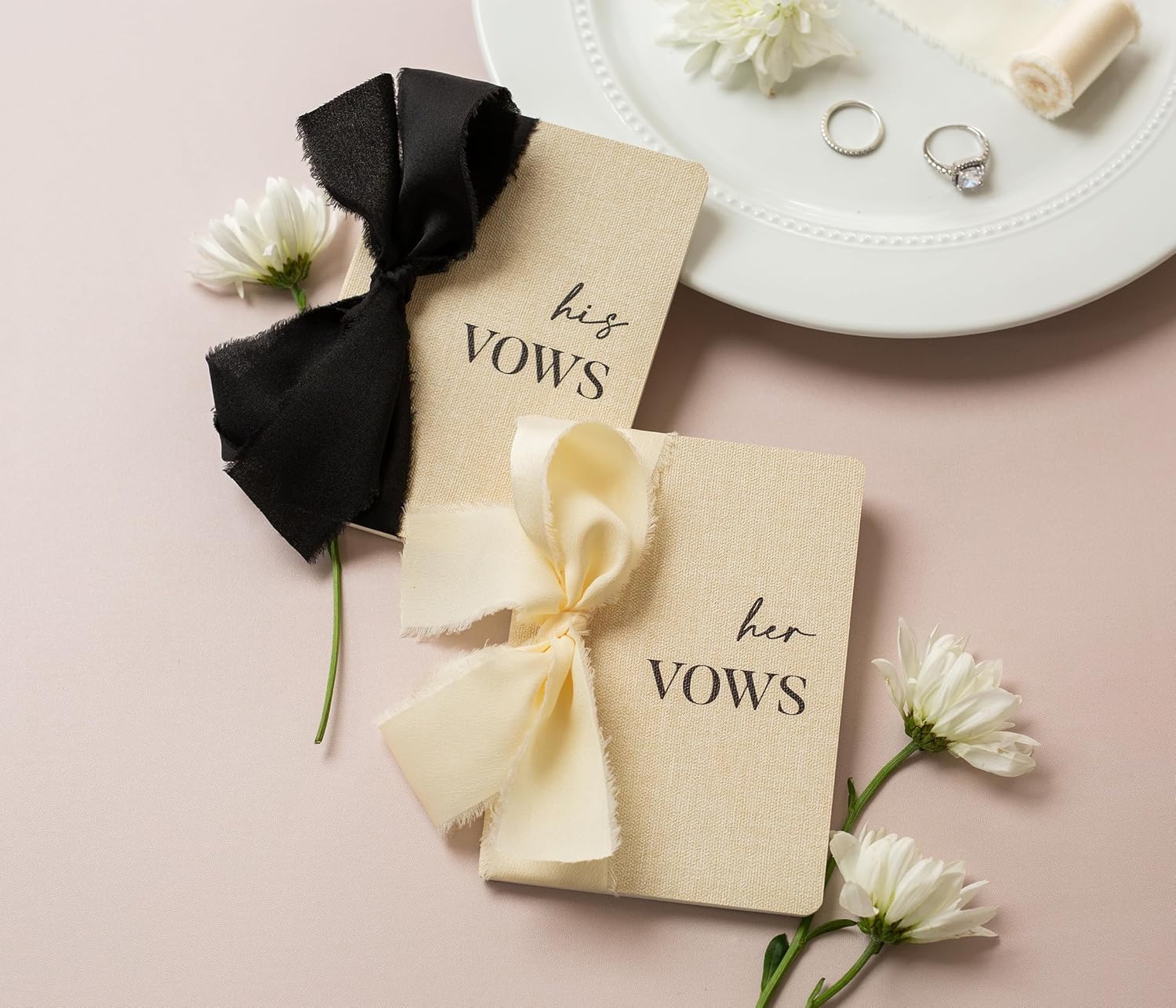 • Each set includes two softcover vow books, beautifully finished with coordinating ribbonsβ€”one in ivory and the other in black. These delicate ribbons adds a refined, romantic touch to your ceremony and photos.