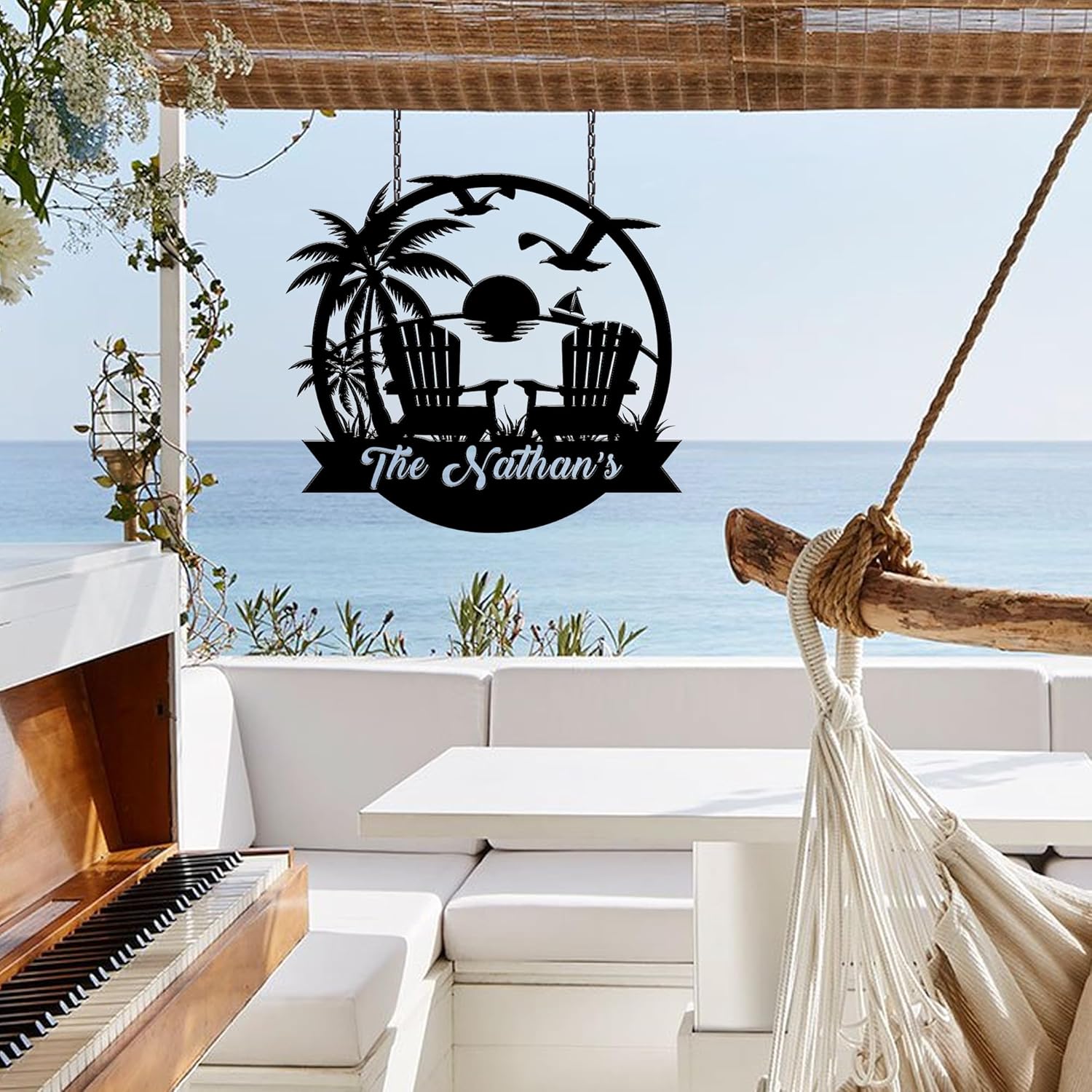Personalized Beach Decor for Home, Custom Metal Sign Outdoor Nautical Decor, Palm Trees Coastal Wall Art, Family Last Name Sign, Christmas Housewarming Wedding Gifts