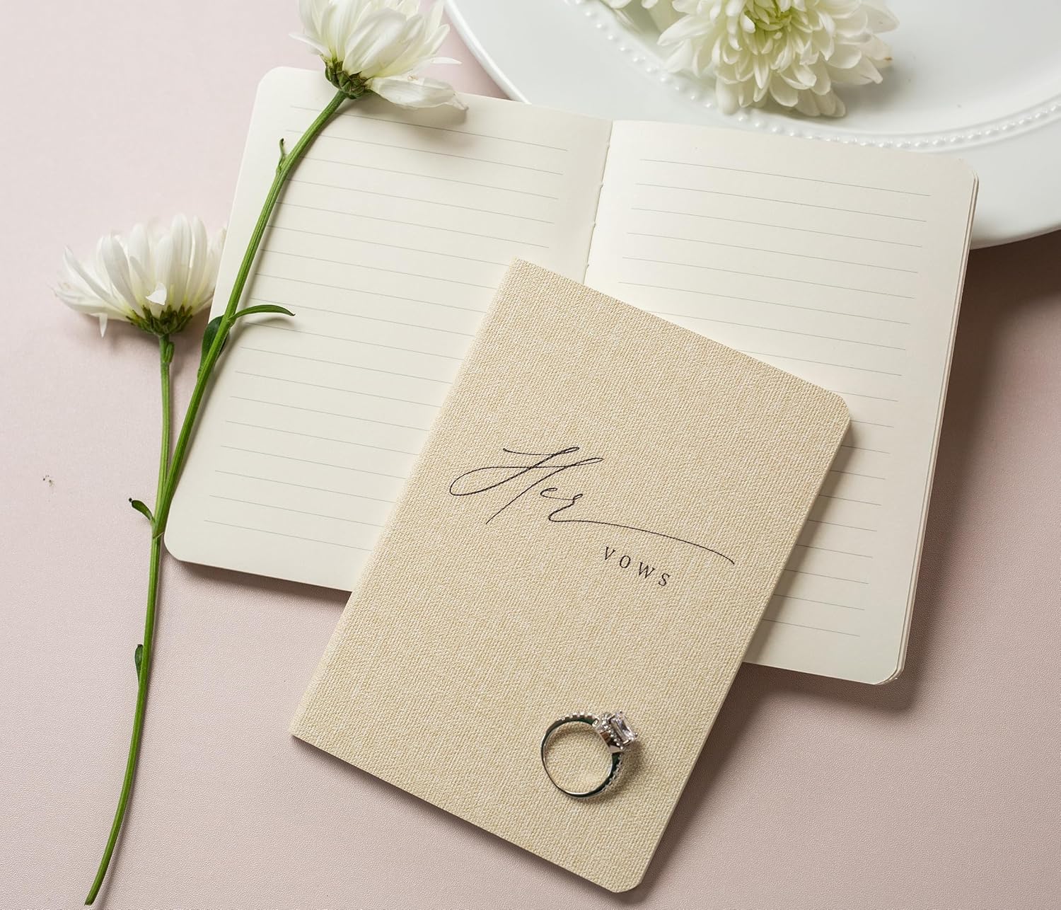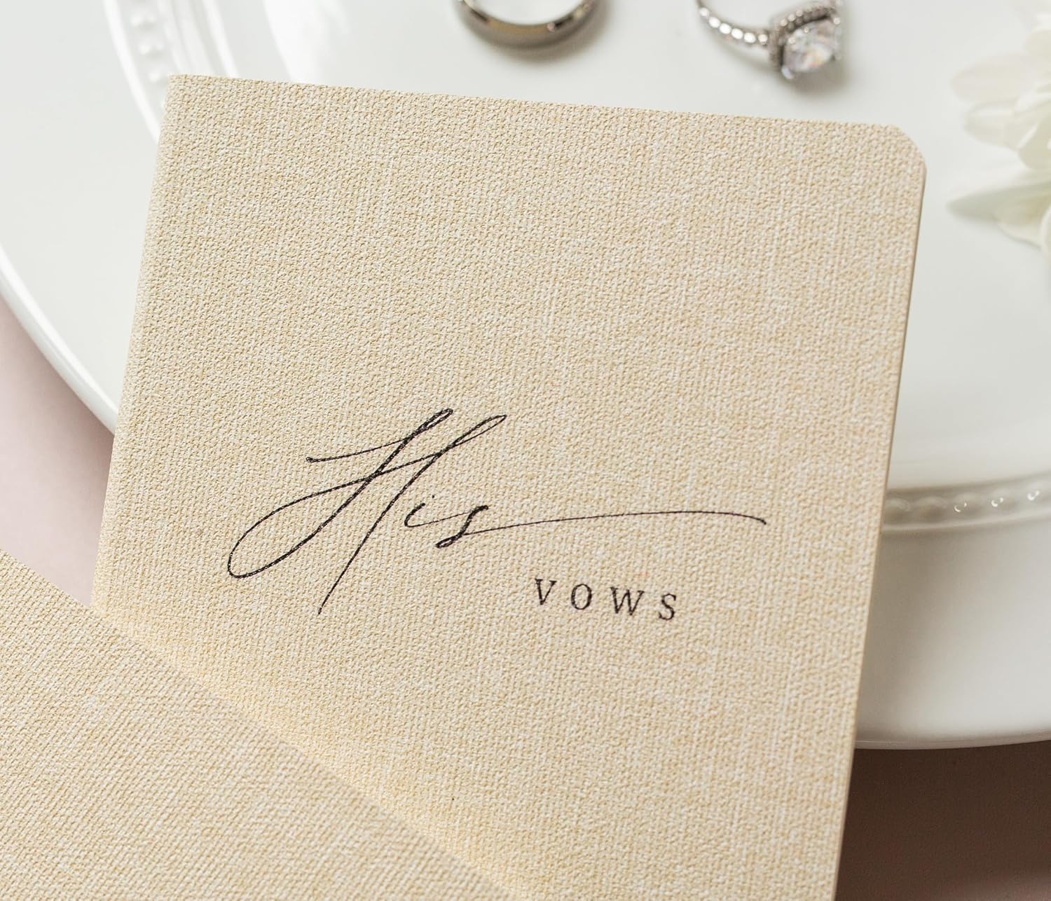• Our vow books serve the primary purpose of helping you capture and preserve your wedding vows in a dedicated and elegant format. Whether you are writing 'his vows' or 'her vows,' these booklets offer a cherished space for your thoughts and promises, making them an invaluable keepsake. Perfect for wedding ceremonies, vow renewals, or as a heartfelt gift for your fiancé, these vow books add a personal touch to your wedding journal.