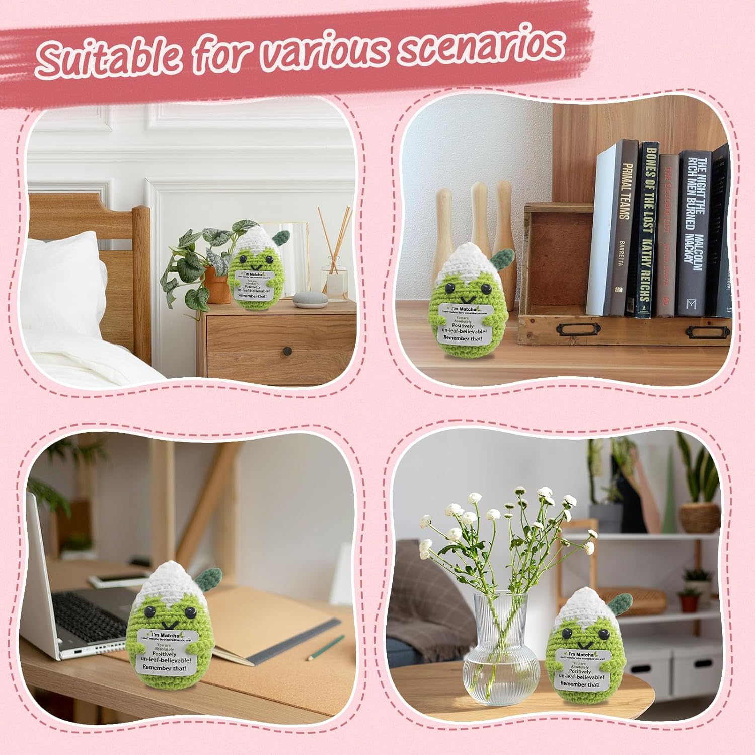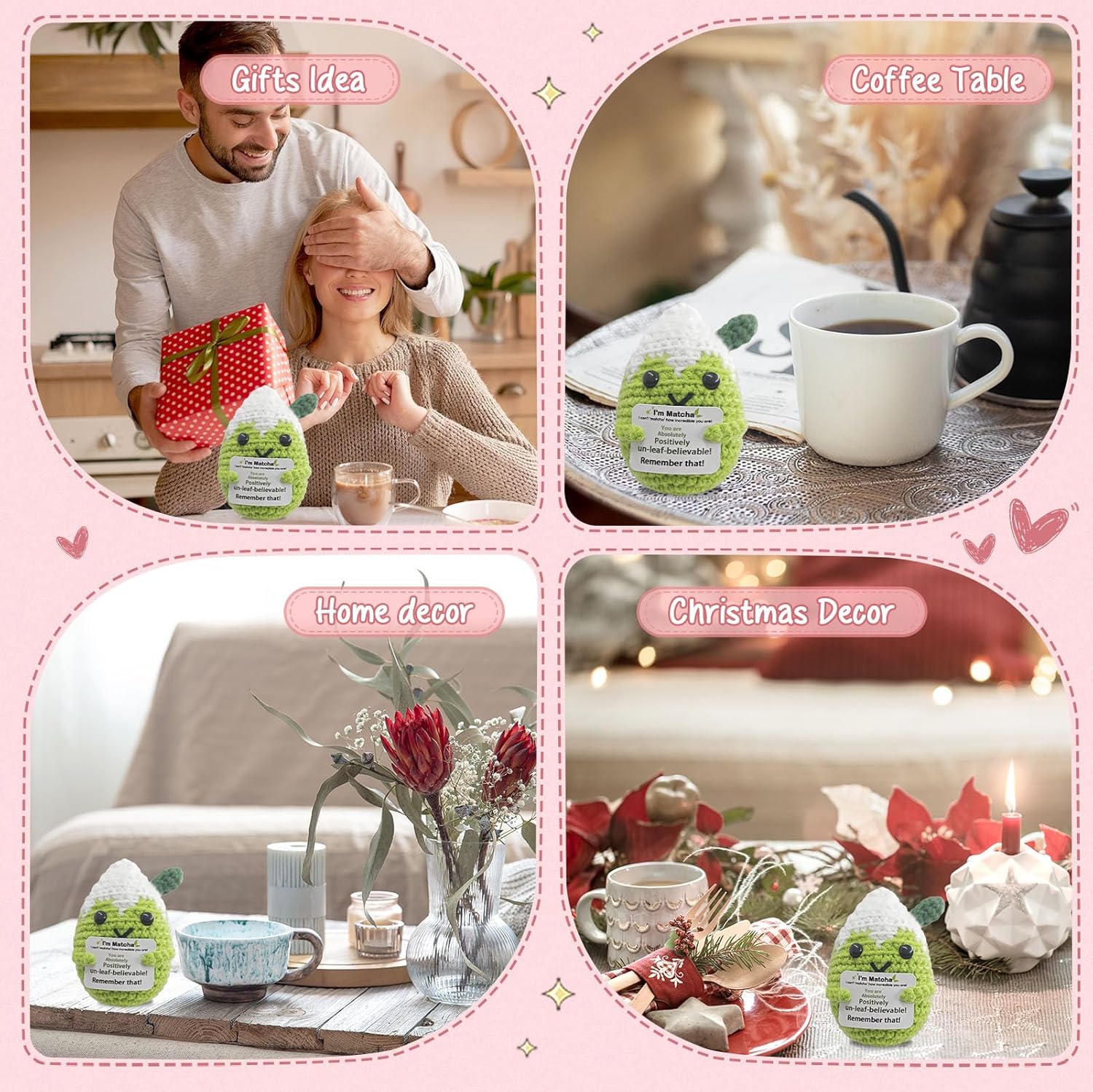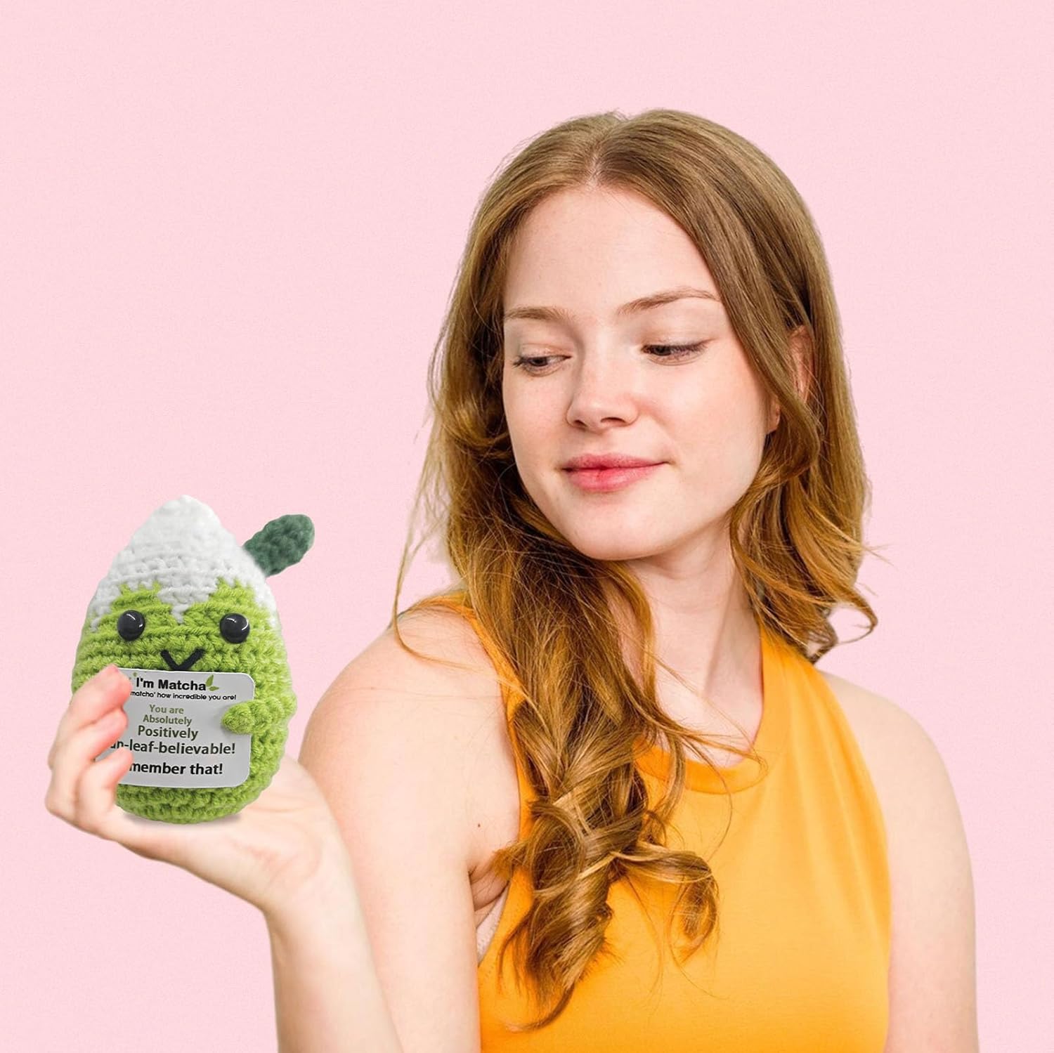 Mini Matcha Crochet Gift,Cute Handmade Positive Crochet,Birthday Gifts for Women Men Presents,Handmade Emotional Positive Crochets Matcha Decor,Office & Home Decor