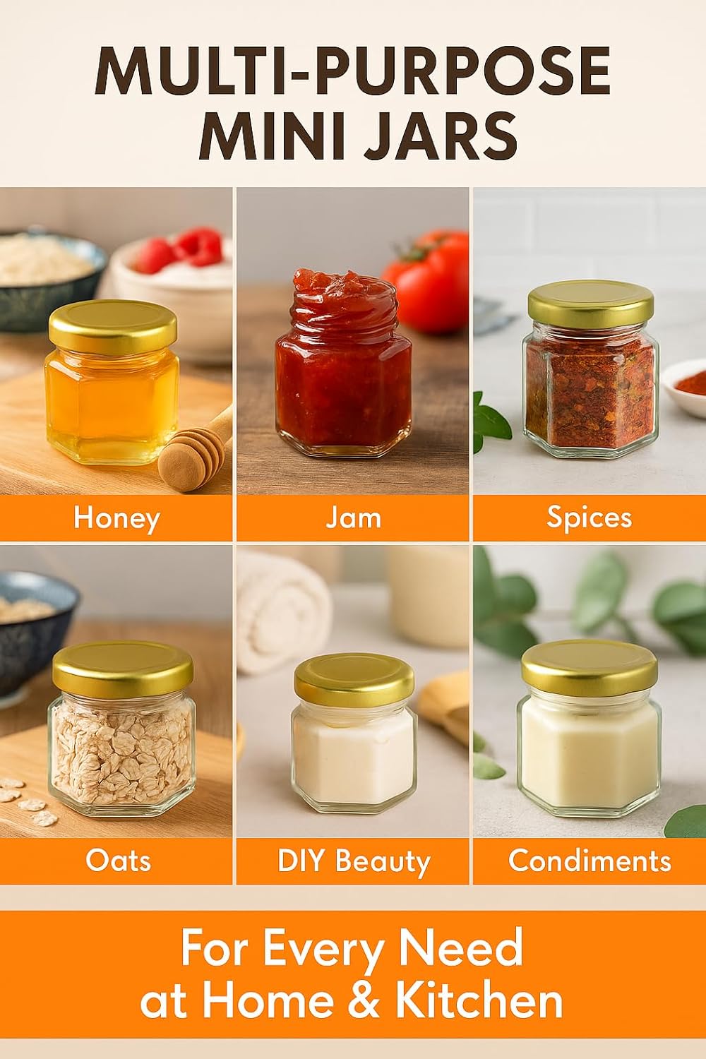 • ✅ Classic & Compact Glass Design Each jar holds 1.5oz and features a hexagon shape for a charming, vintage look. The compact size is ideal for honey, jam, spices, small desserts, and decorative craft items.
