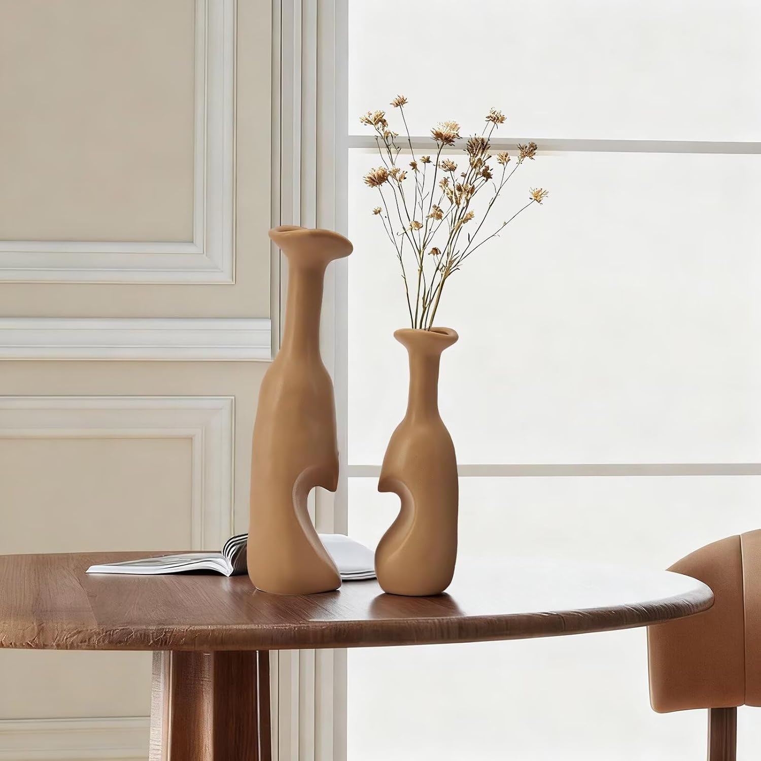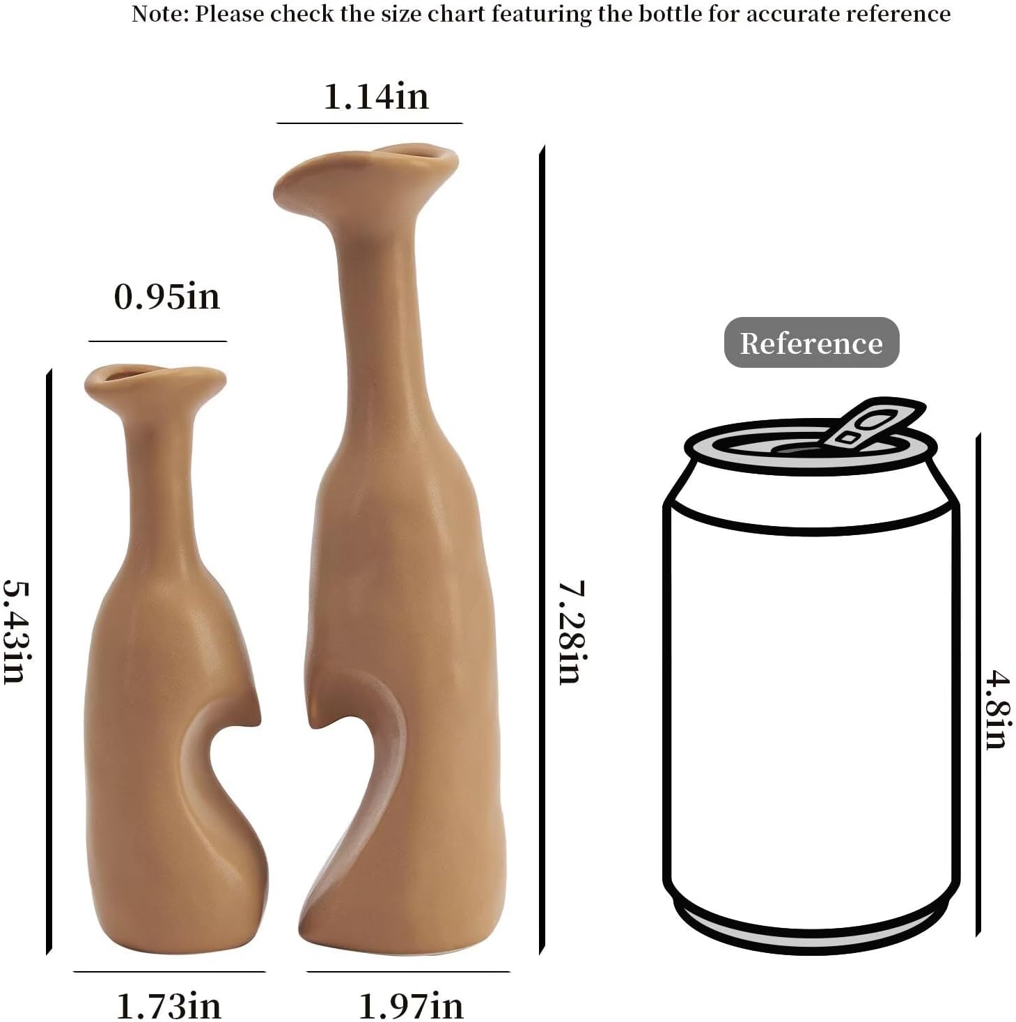 • Multifunctional Decorative Small Vase Set: Include 2 heart-shaped handcrafted vases in different ceramic vases, a large vase (1.97"L x 1.14"W x 7.28"H) and a short vase (1.73"L x 0.95"W x 5.43"H). It is decorative vases for living rooms, bedrooms. It can also be use as gifts for Weddings, Housewarmings.