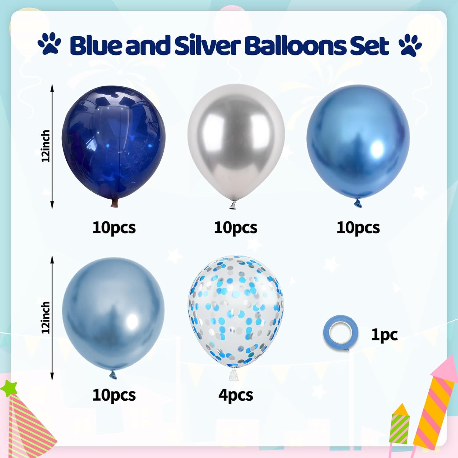 • What You Get - The royal blue silver balloons include 50 balloons, 6 distinct colors: Retro translucent blue balloons x 27, metallic silver balloons x 6, metallic blue balloons x 6, metallic baby blue balloons x 6, blue silver confetti balloons x 5. Accompanying by a 10m ribbon. These striking and captivating hues will beautifully enhance your memorable and enjoyable moments!