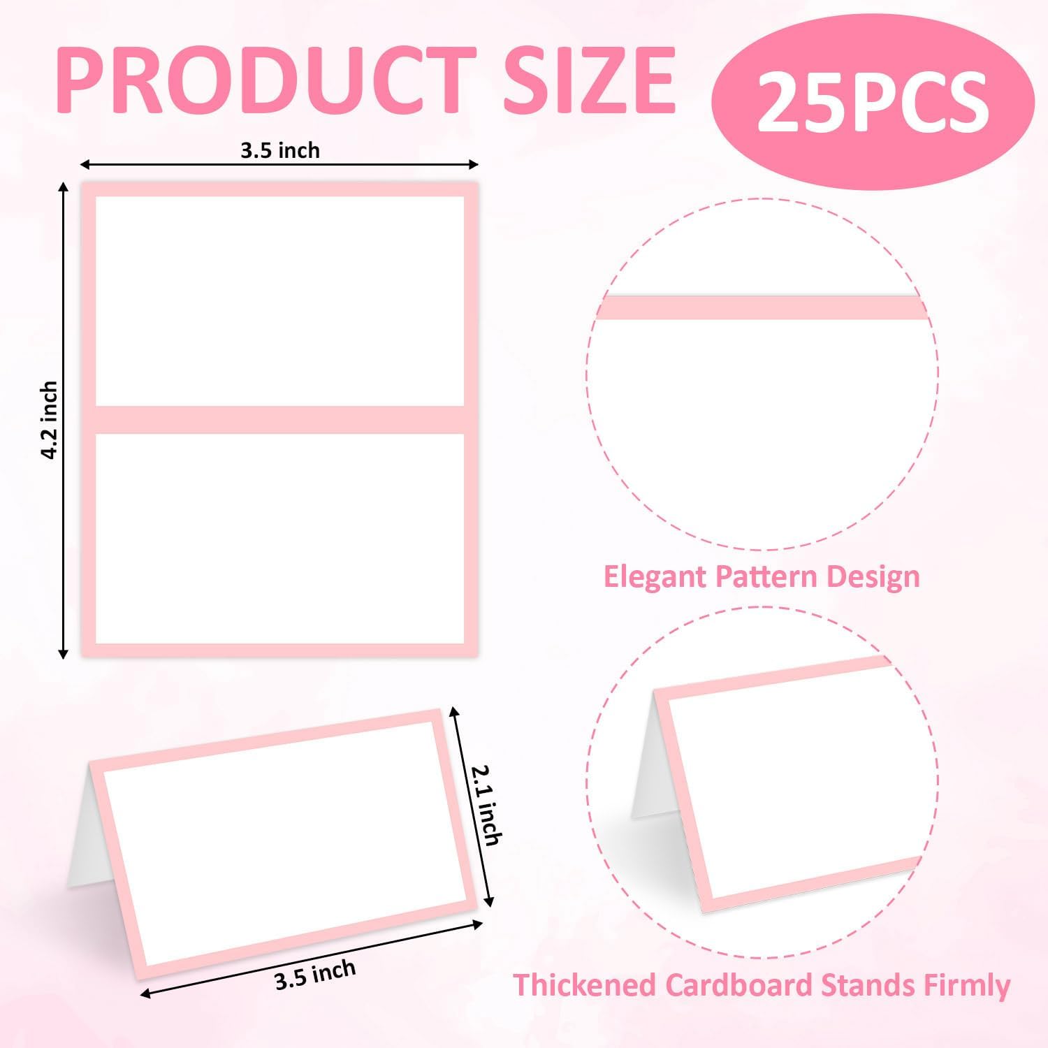 25 Pcs Blush Pink Place Cards, Blank Tent Name Cards for Food Buffet, Dinner Party, Wedding Reception, Bridal Shower Table Setting -02