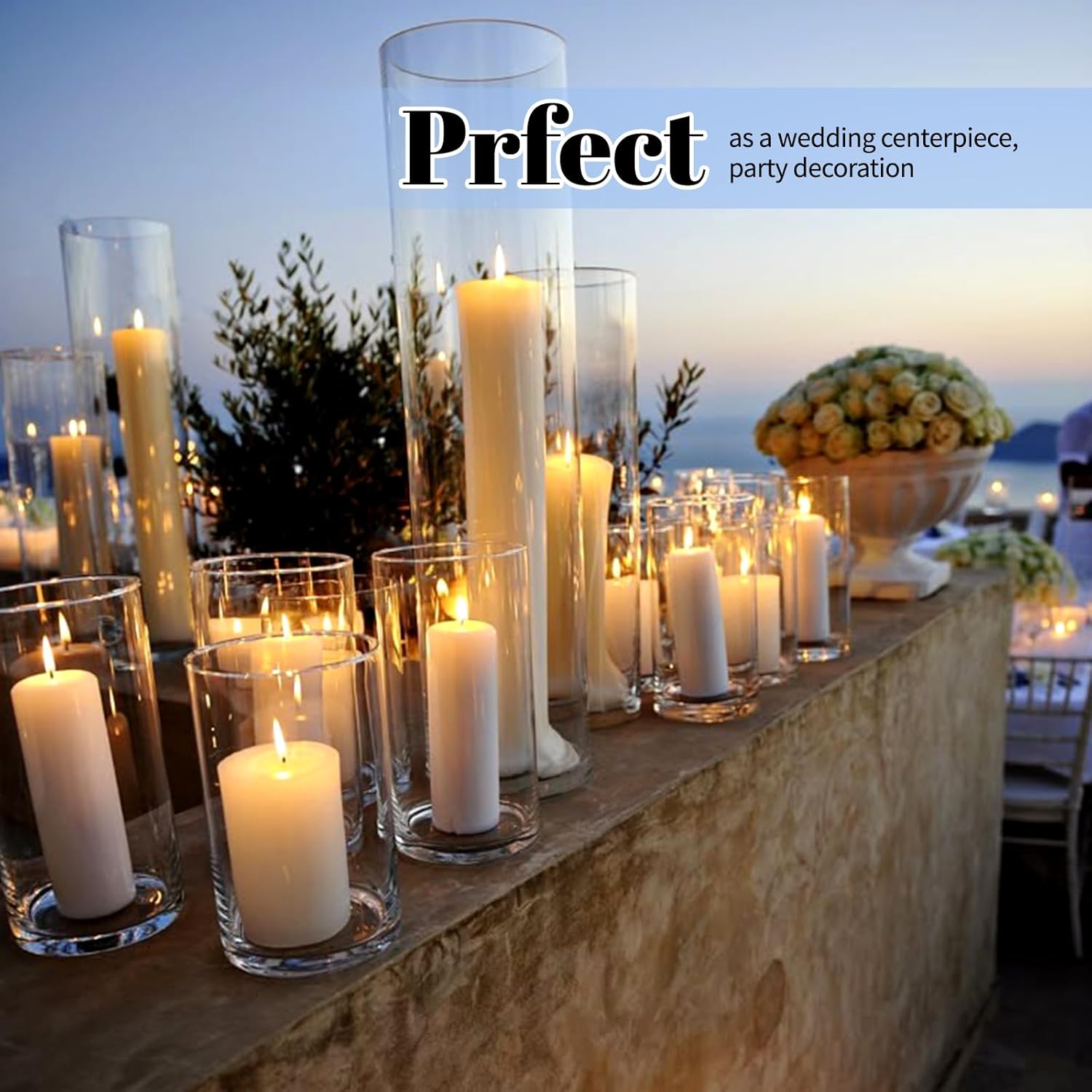 12Pack Glass Cylinder Vases for Centerpieces - 12 Inch Tall Flower Vase for Wedding Decorations, Floating Candle Holder Vase Bulk,Glass Hurricane Candle Holders for Table Shelf, Party, Home Decor