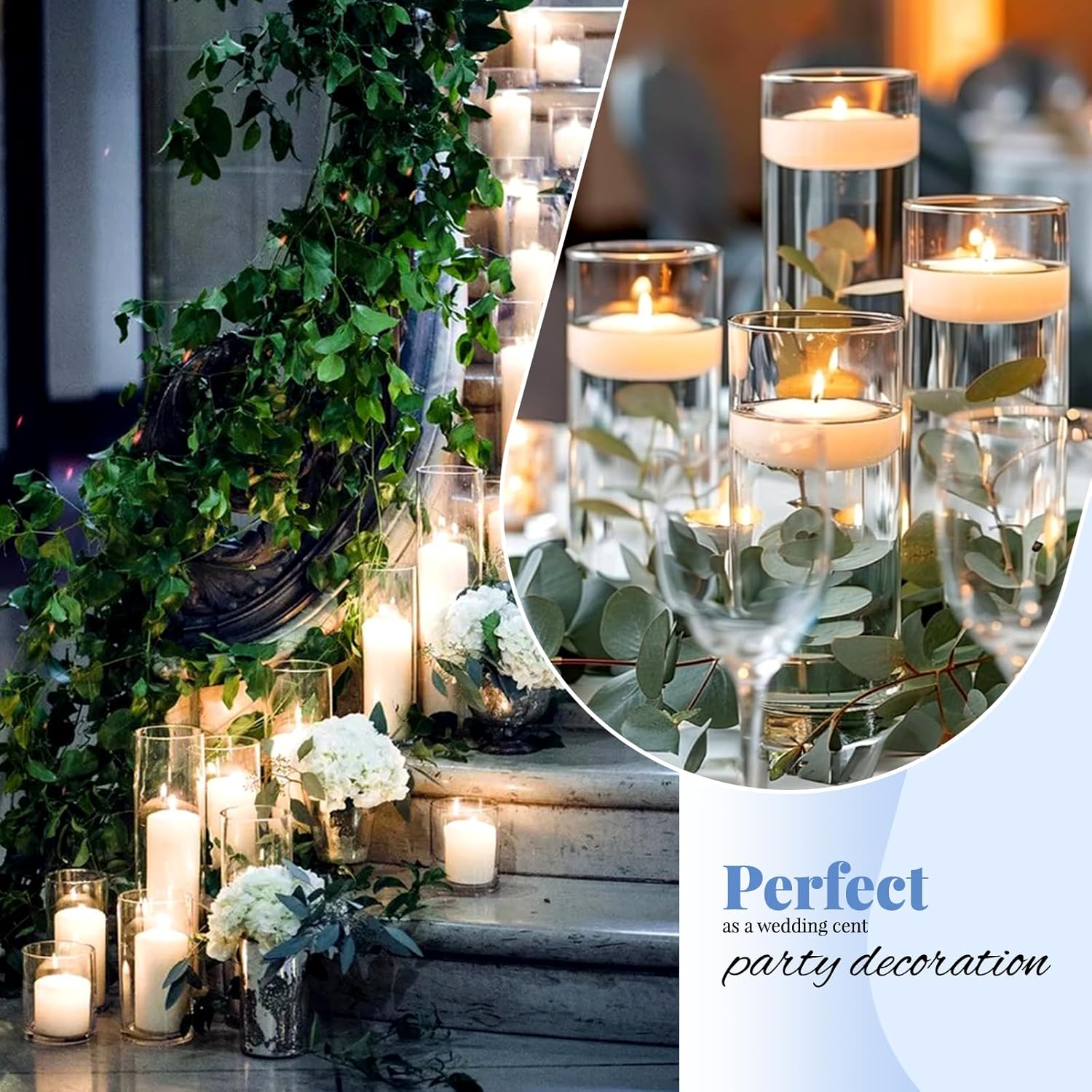 • โœ… Premium High-borosilicate Glass: Crafted from food-grade, heat-resistant borosilicate glass, our vases for centerpieces ensures exceptional clarity and durability. Designed with a solid base and smooth, polished rim, this flower vase provides stability and safety during use. This sturdy material can withstand greater temperature changes than regular glass. Perfect for use as a hurricane floating candle holder or for pillar candle holder.