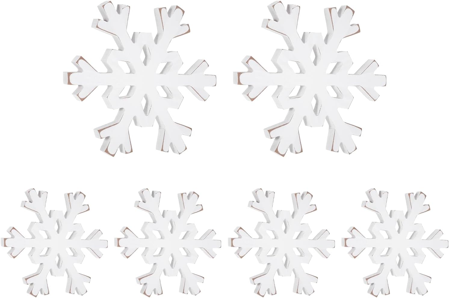 • Value Pack: You will receive 6 white wooden snowflakes, including 2 large wooden snowflakes 4 small snowflakes. Large ones are 15cm wide, small ones 10cm, all 1.2cm thick. This versatile size combo fits Christmas tabletop decor, tiered tray, or shelf, meeting your winter and Christmas decorations needs perfectly as standing Christmas decorations.