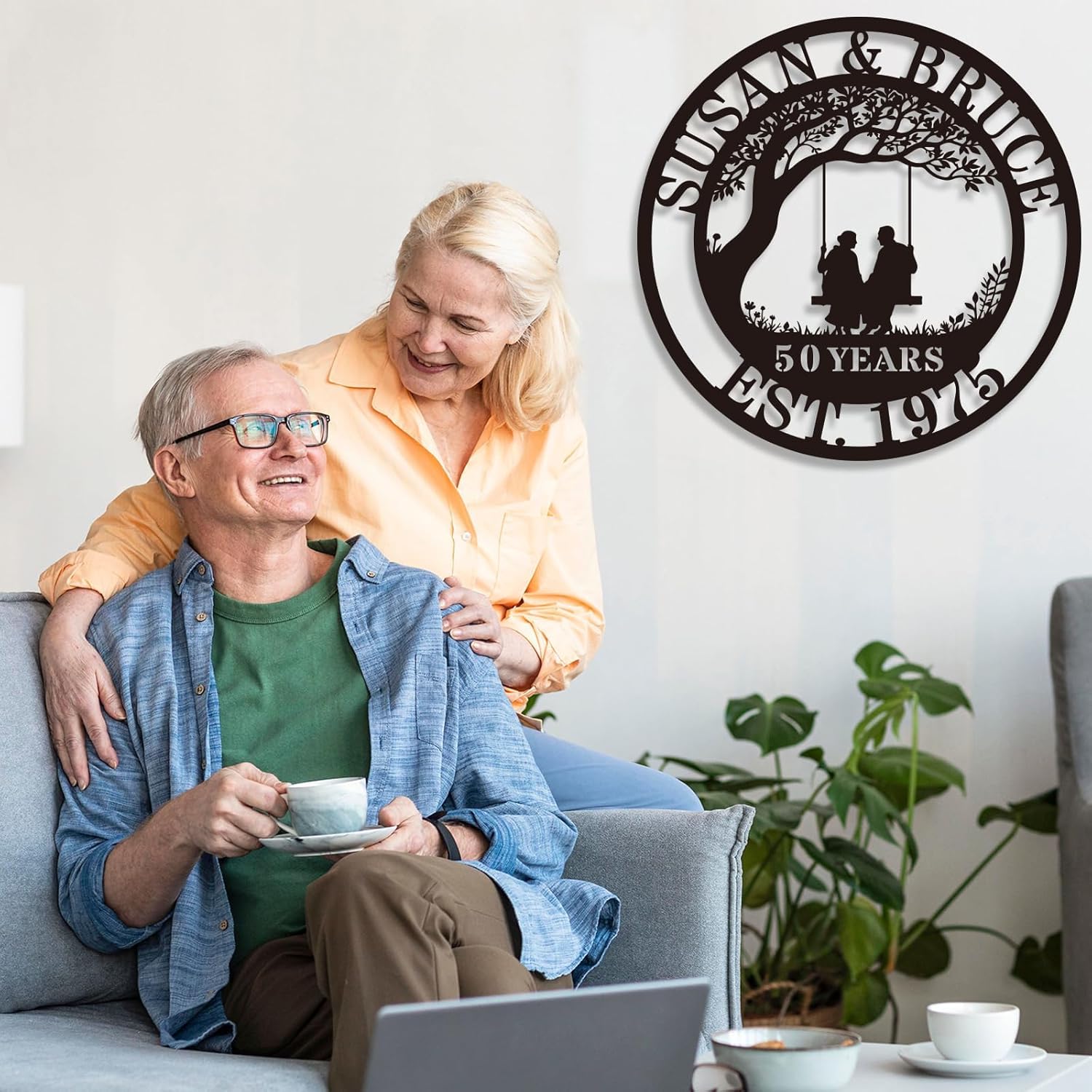 Personalized Wedding Anniversary Sign Gifts,Custom 50th 40th 65th 60th 25th 20th 10th 5th 70th Anniversary Metal Sign,Wedding Gifts for Couples,House Warming Gifts New Home,Custom Name Sign